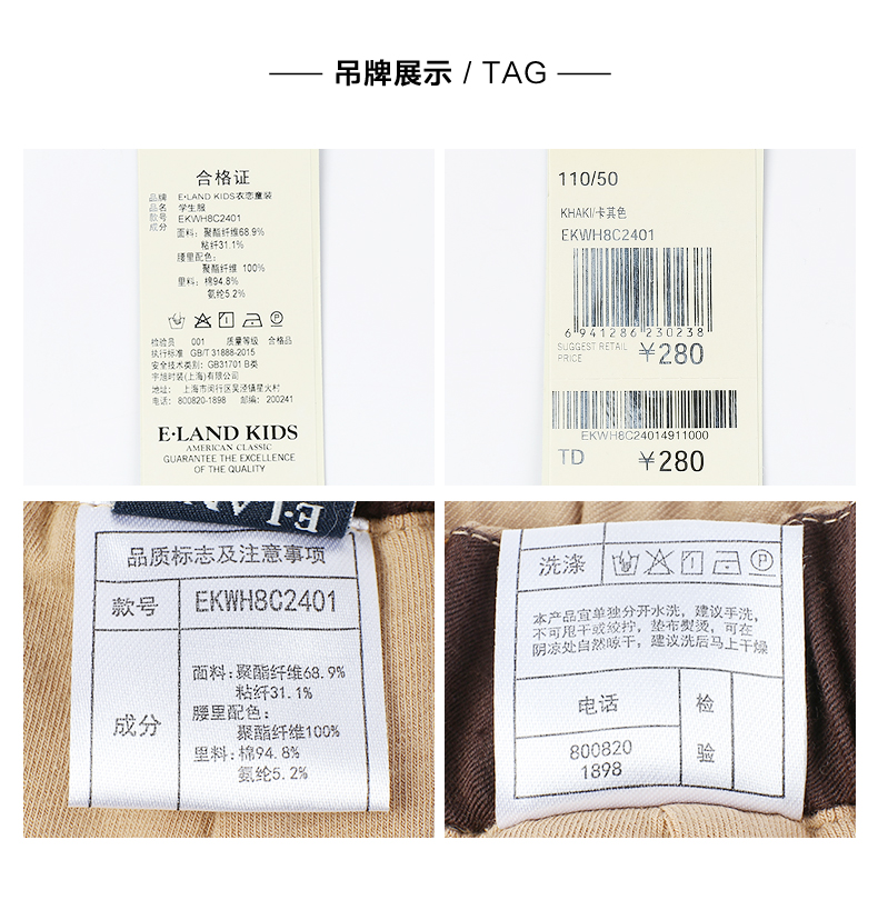 深圳纯水岸幼儿园男女孩同款运动长裤
