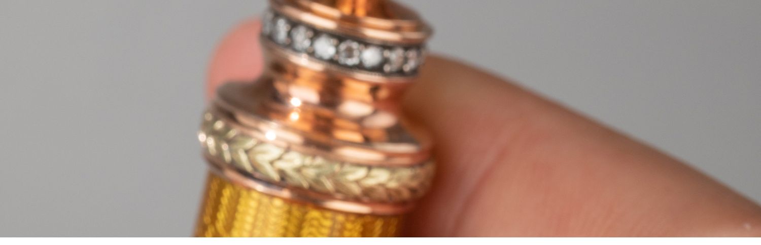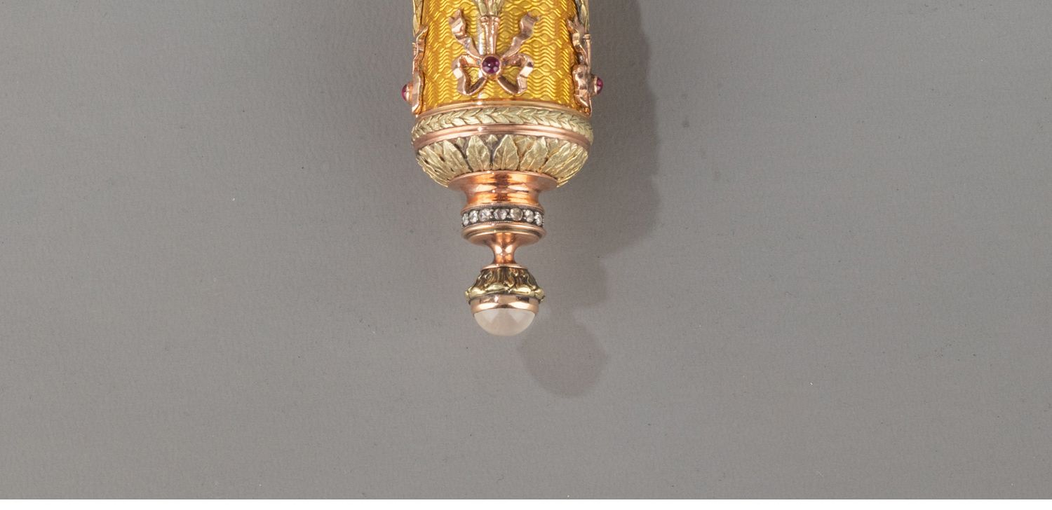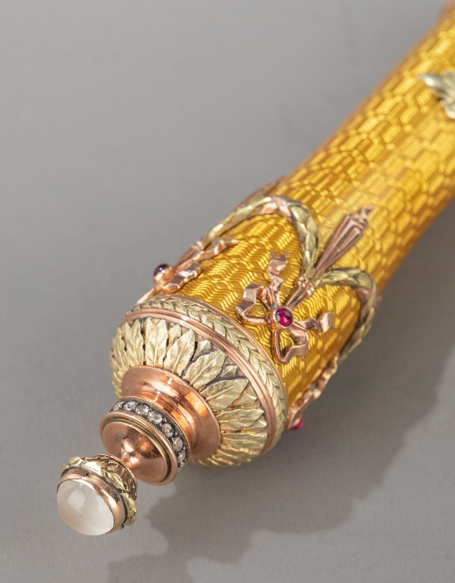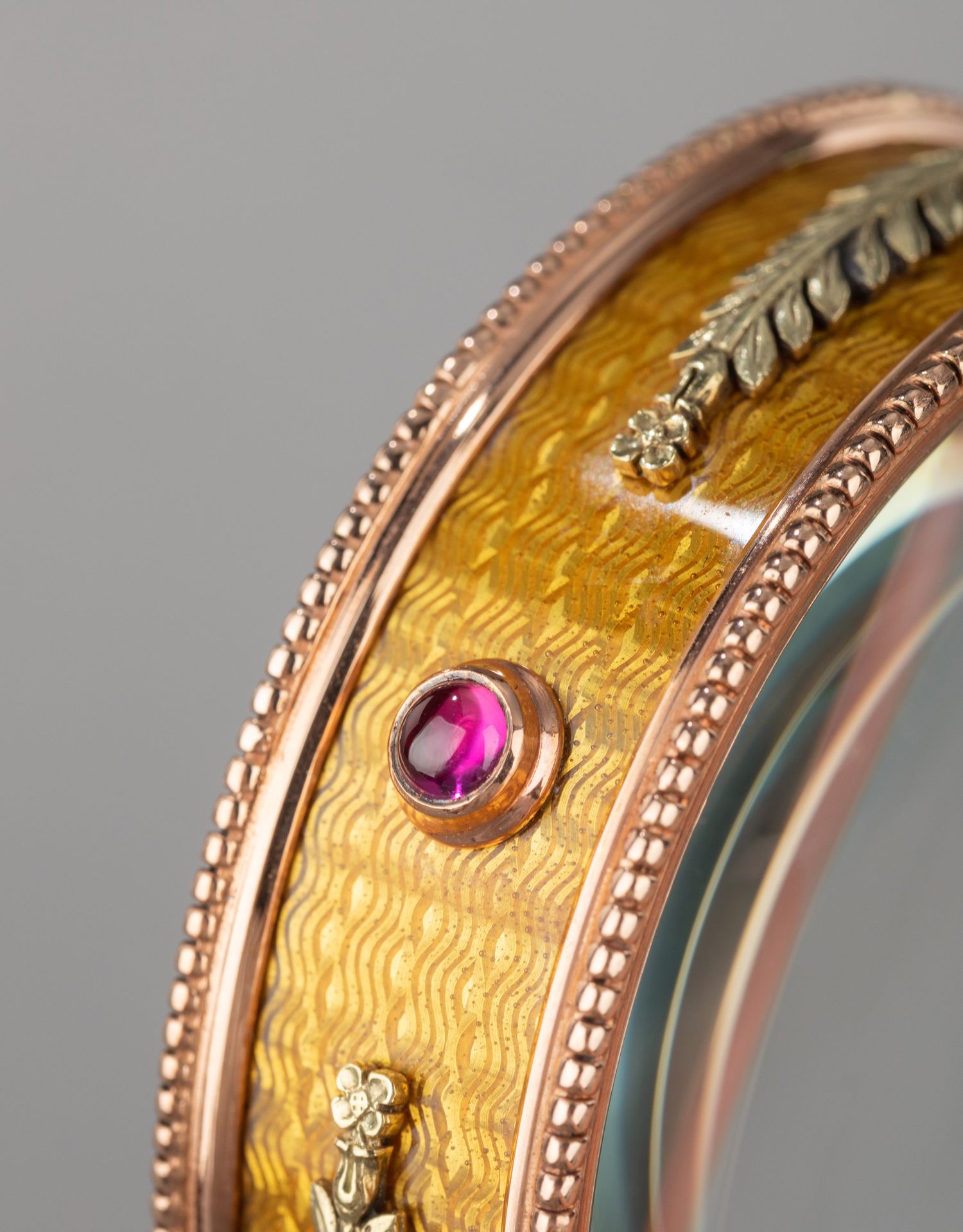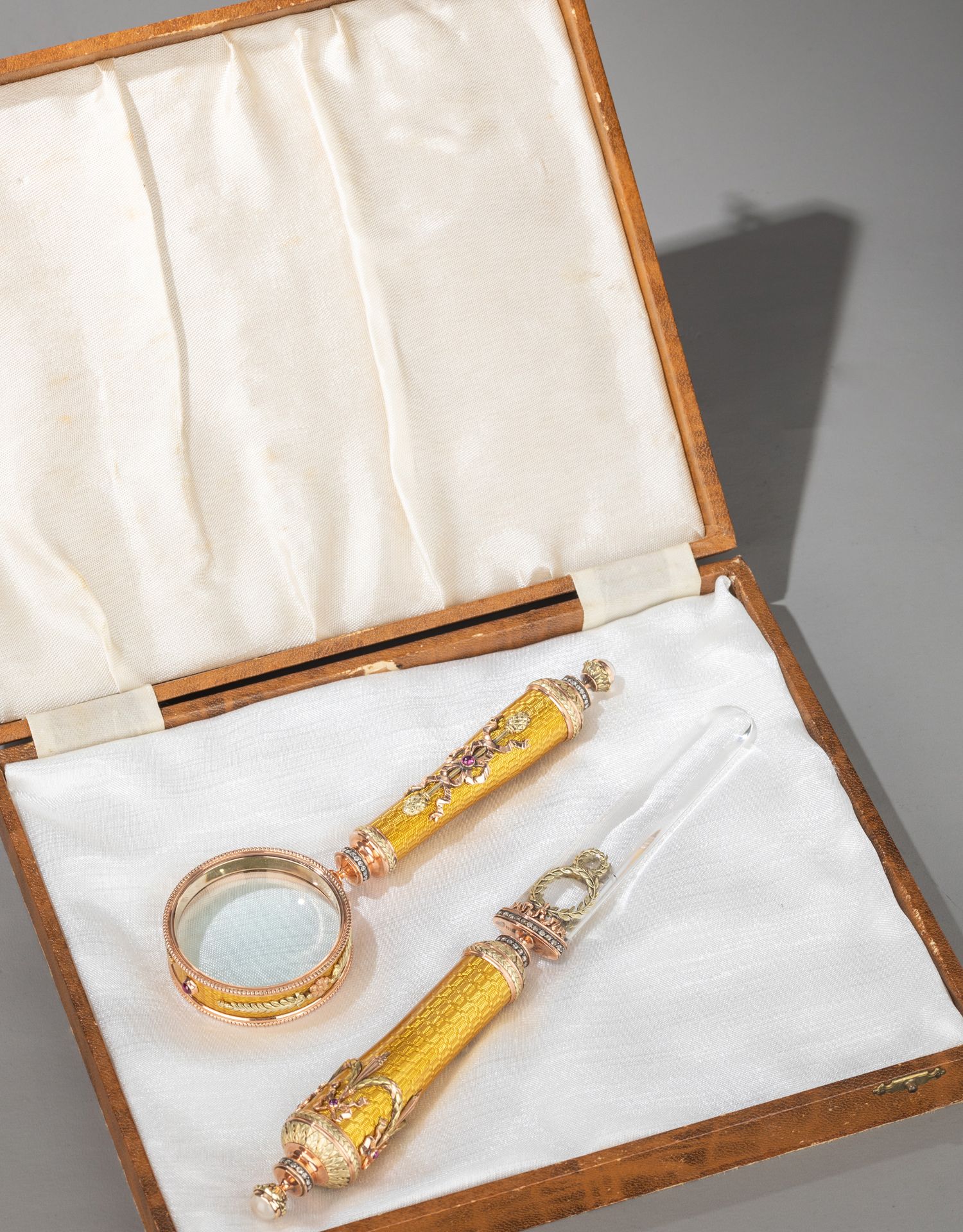 独角鹿西洋古董法贝热14K金镶红宝石玑镂珐琅水晶翻书杖放大镜