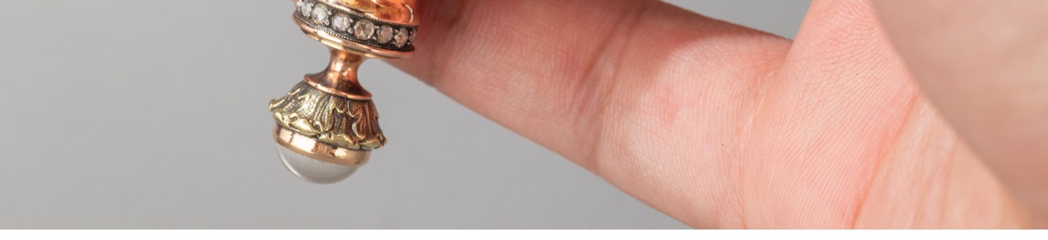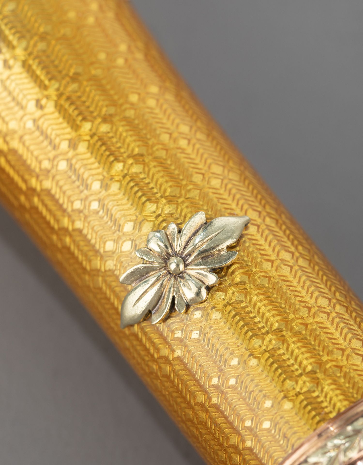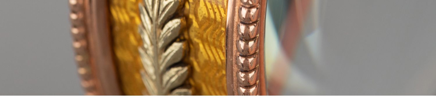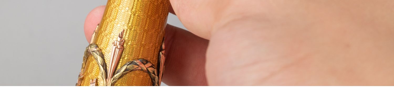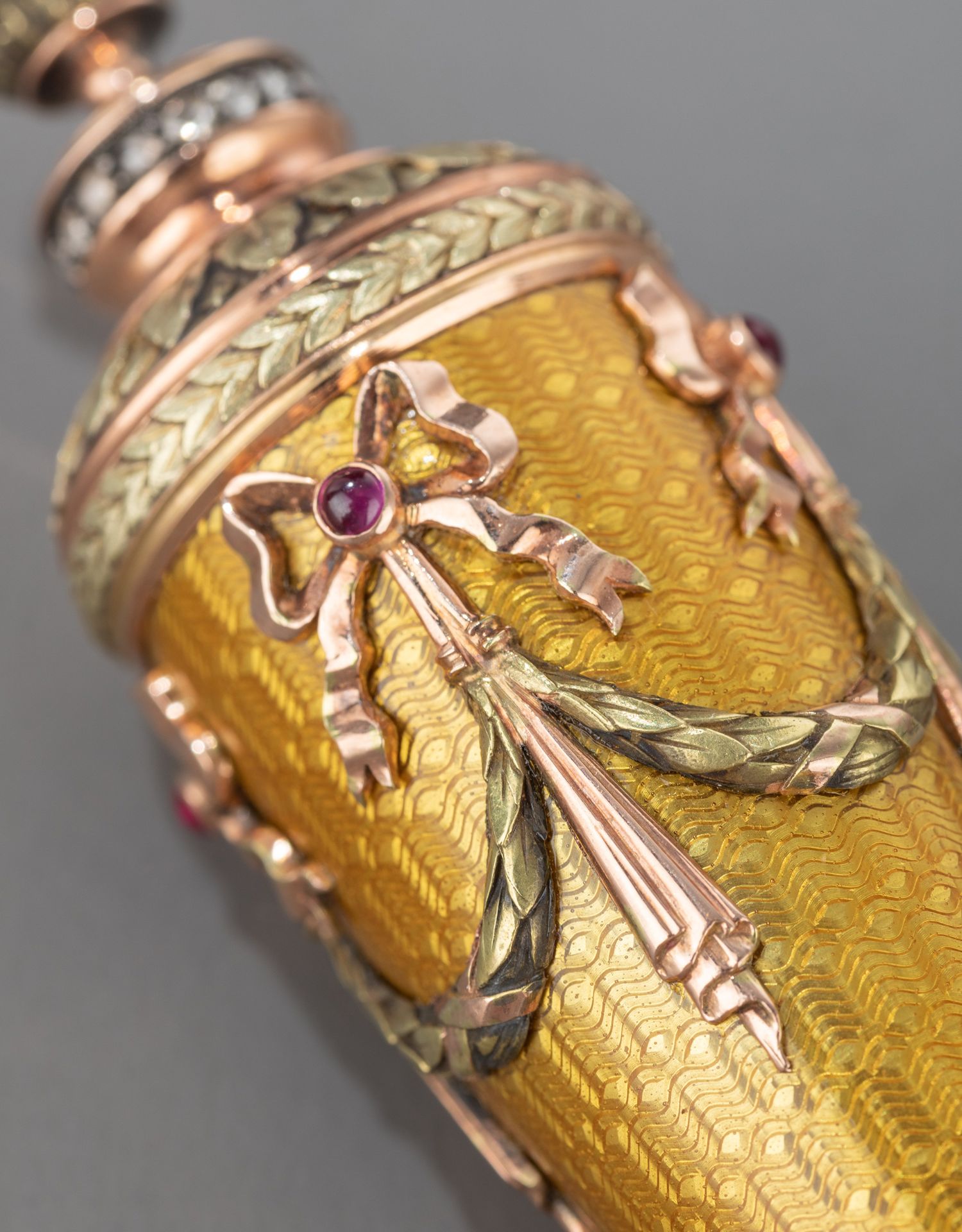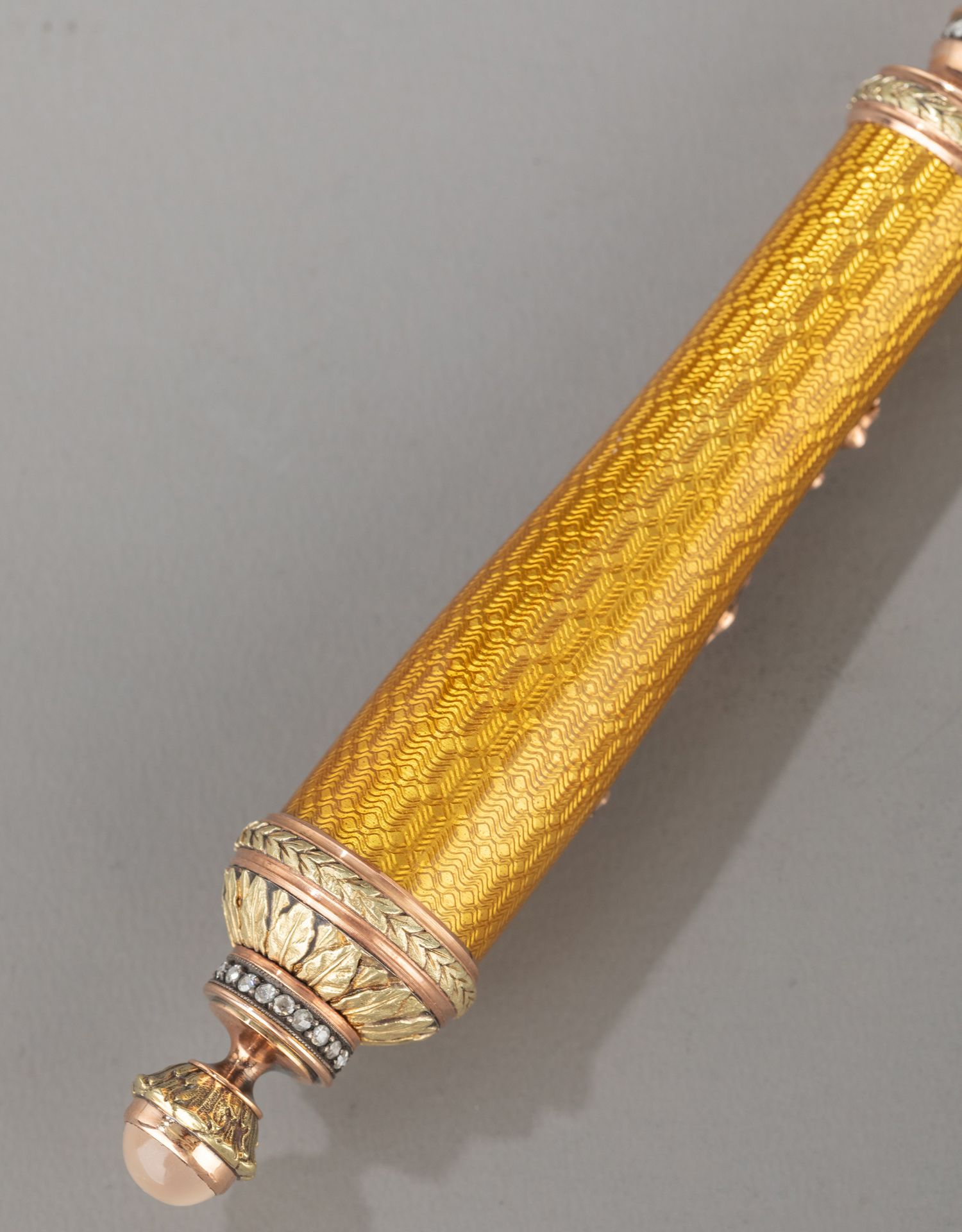 独角鹿西洋古董法贝热14K金镶红宝石玑镂珐琅水晶翻书杖放大镜