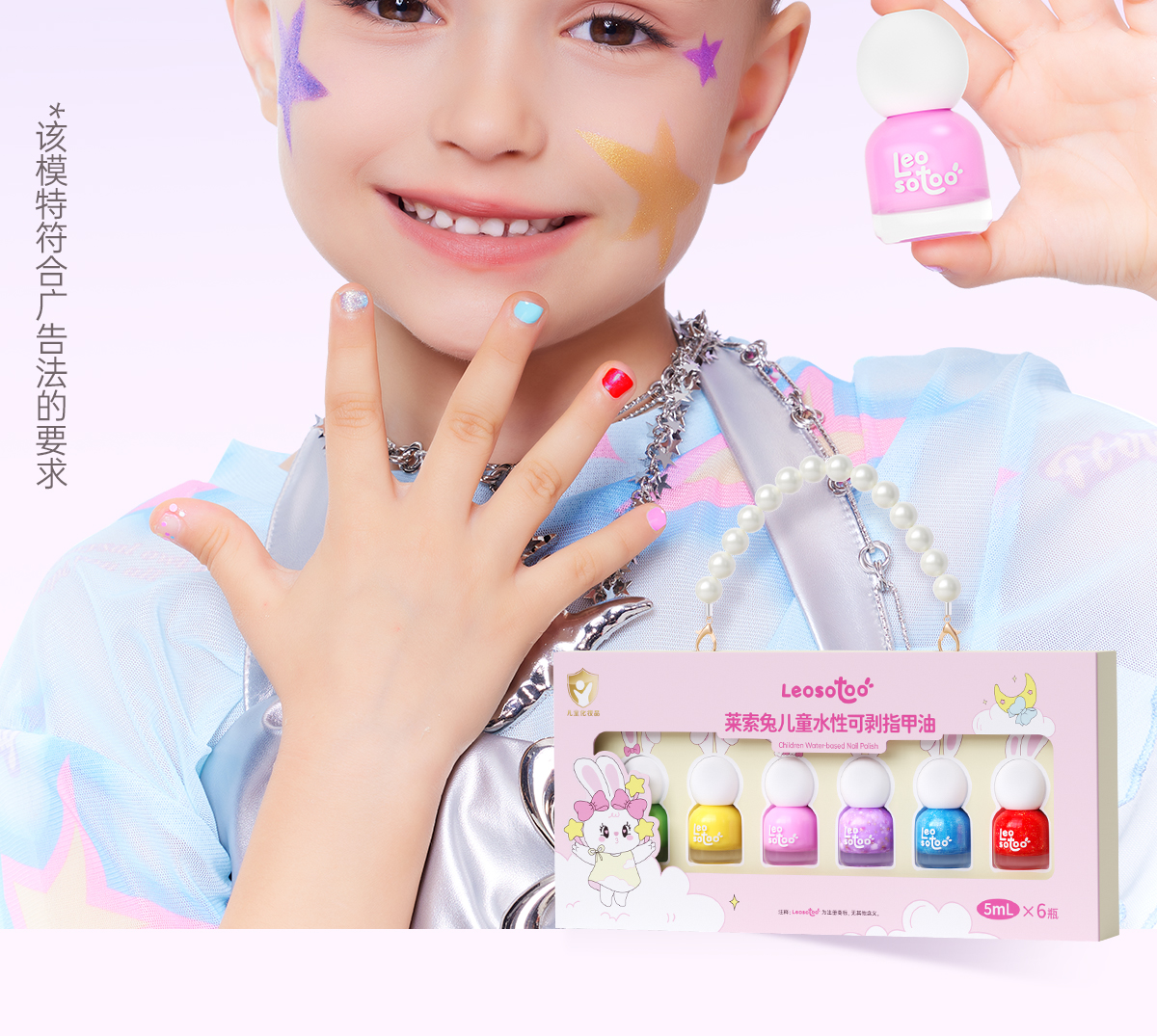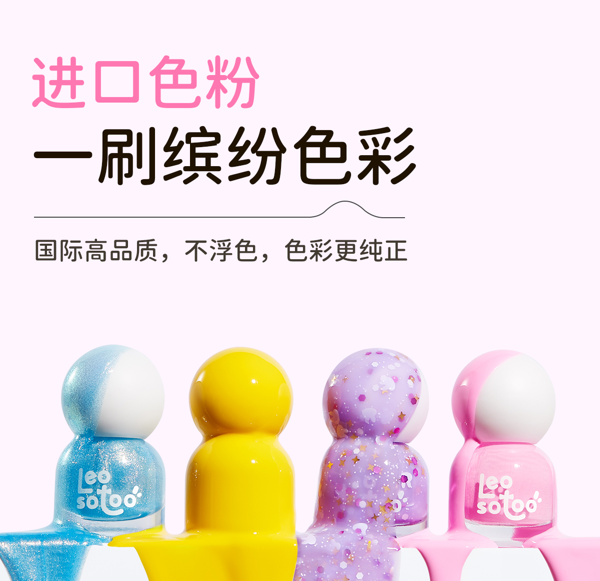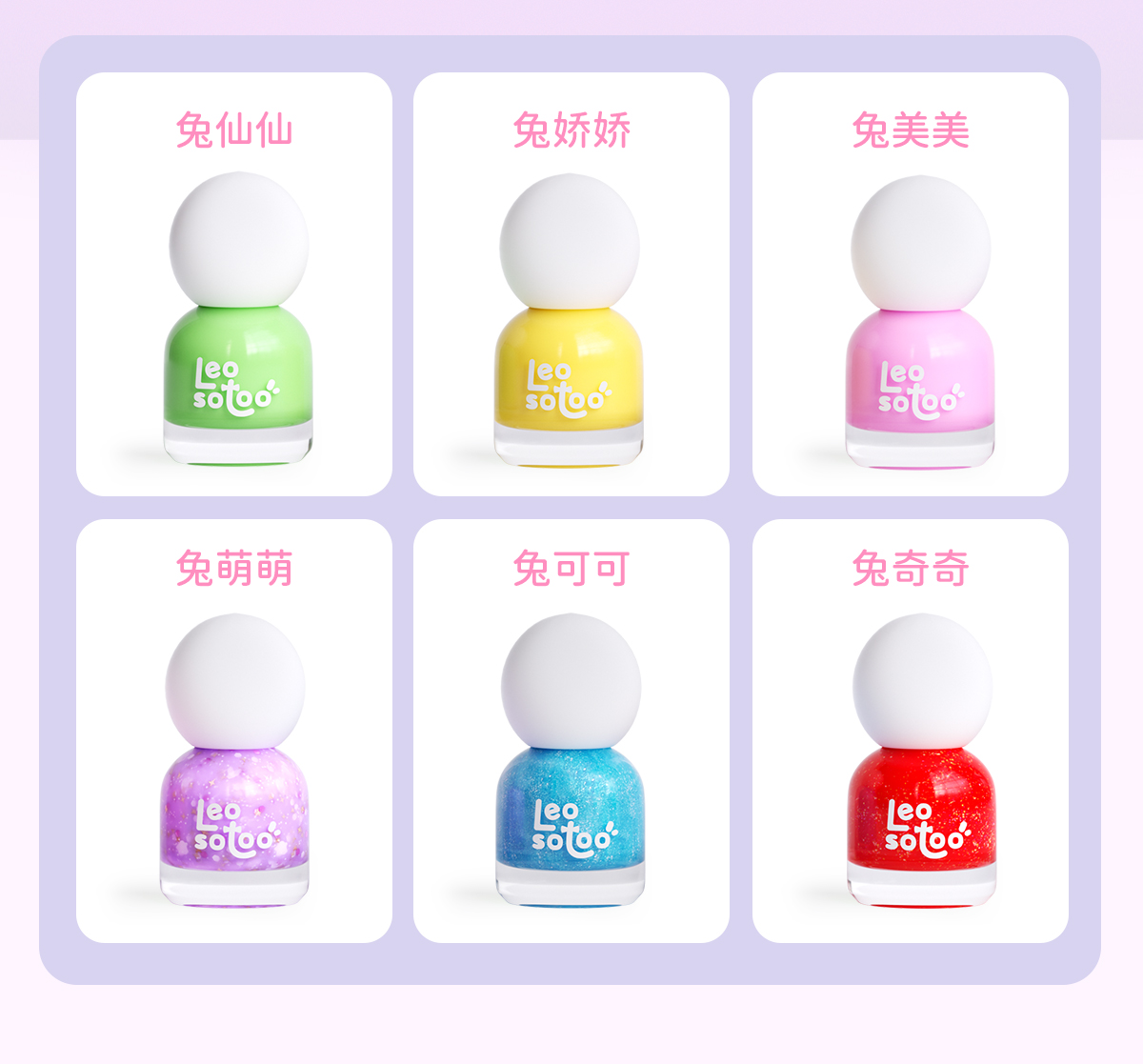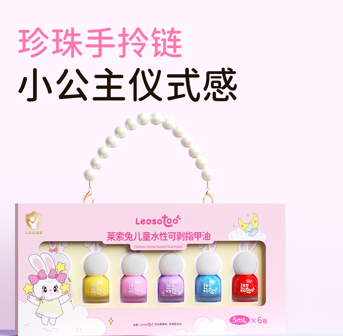 莱索兔Leosotoo儿童指甲油6色套装 无毒无味美甲可撕拉