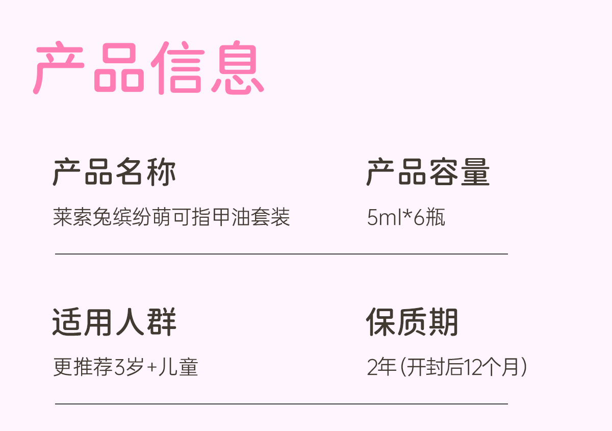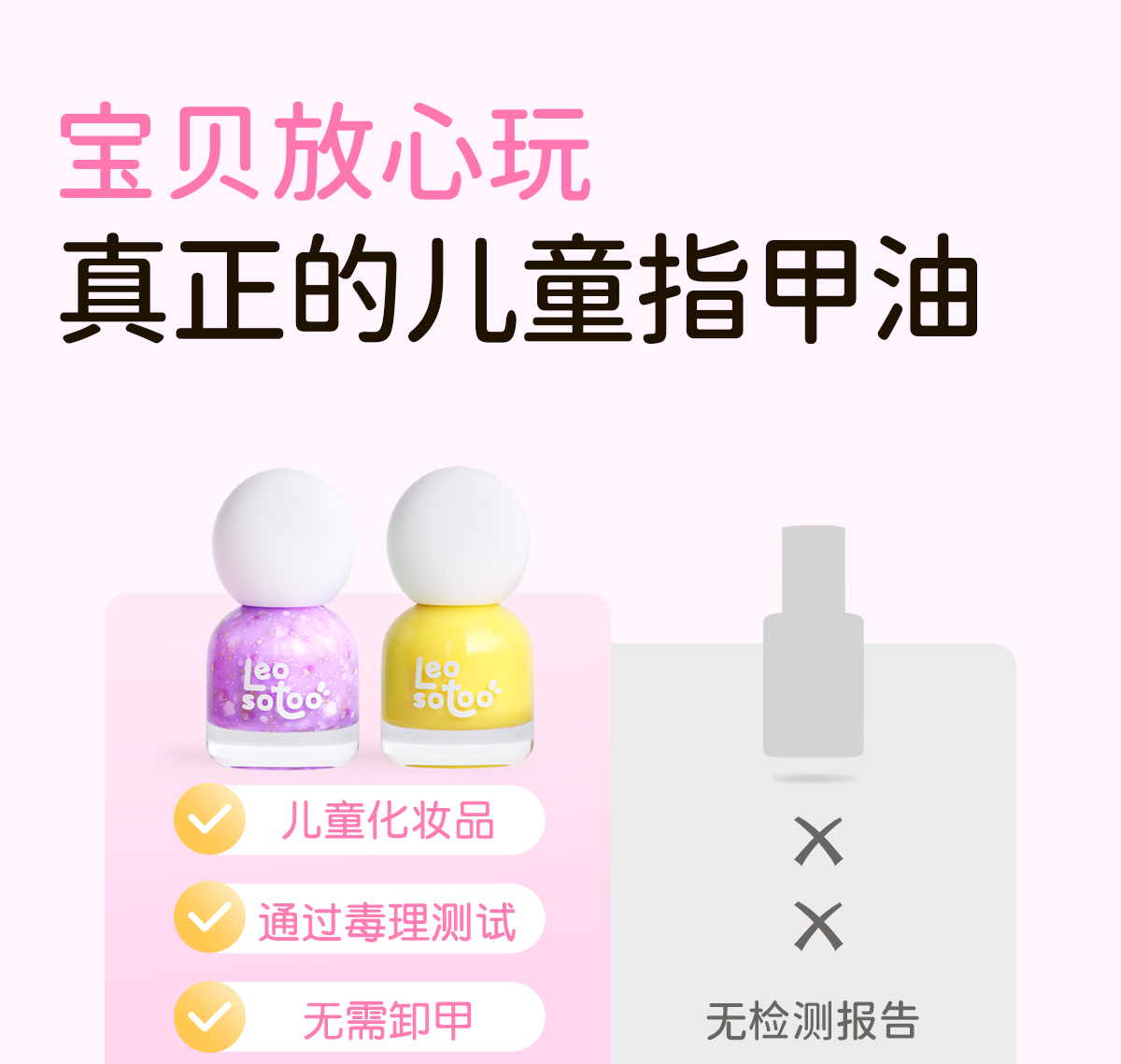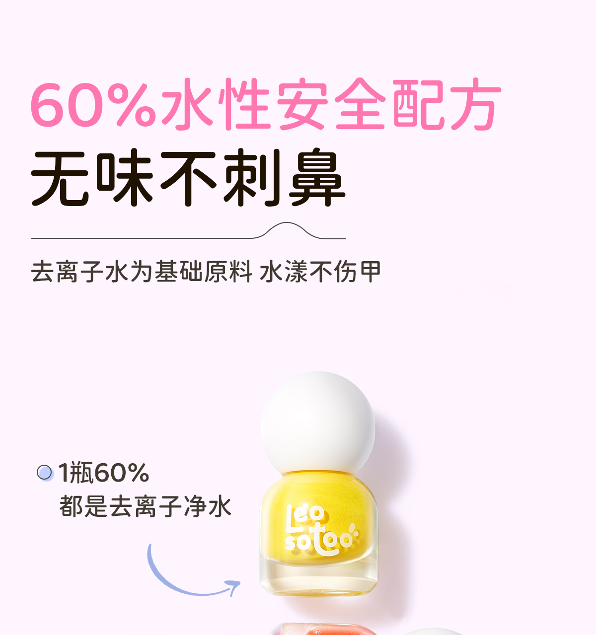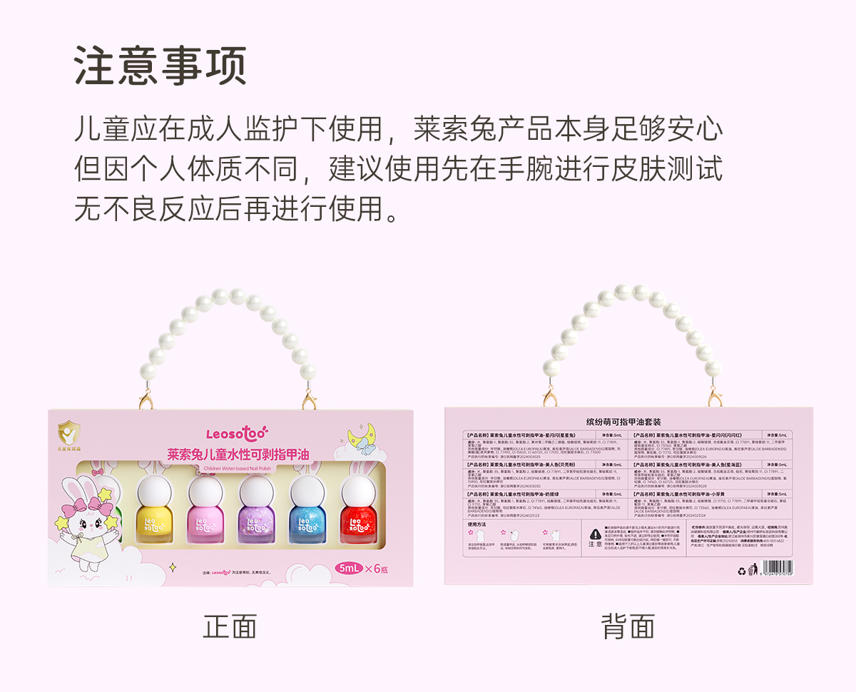 莱索兔Leosotoo儿童指甲油6色套装 无毒无味美甲可撕拉
