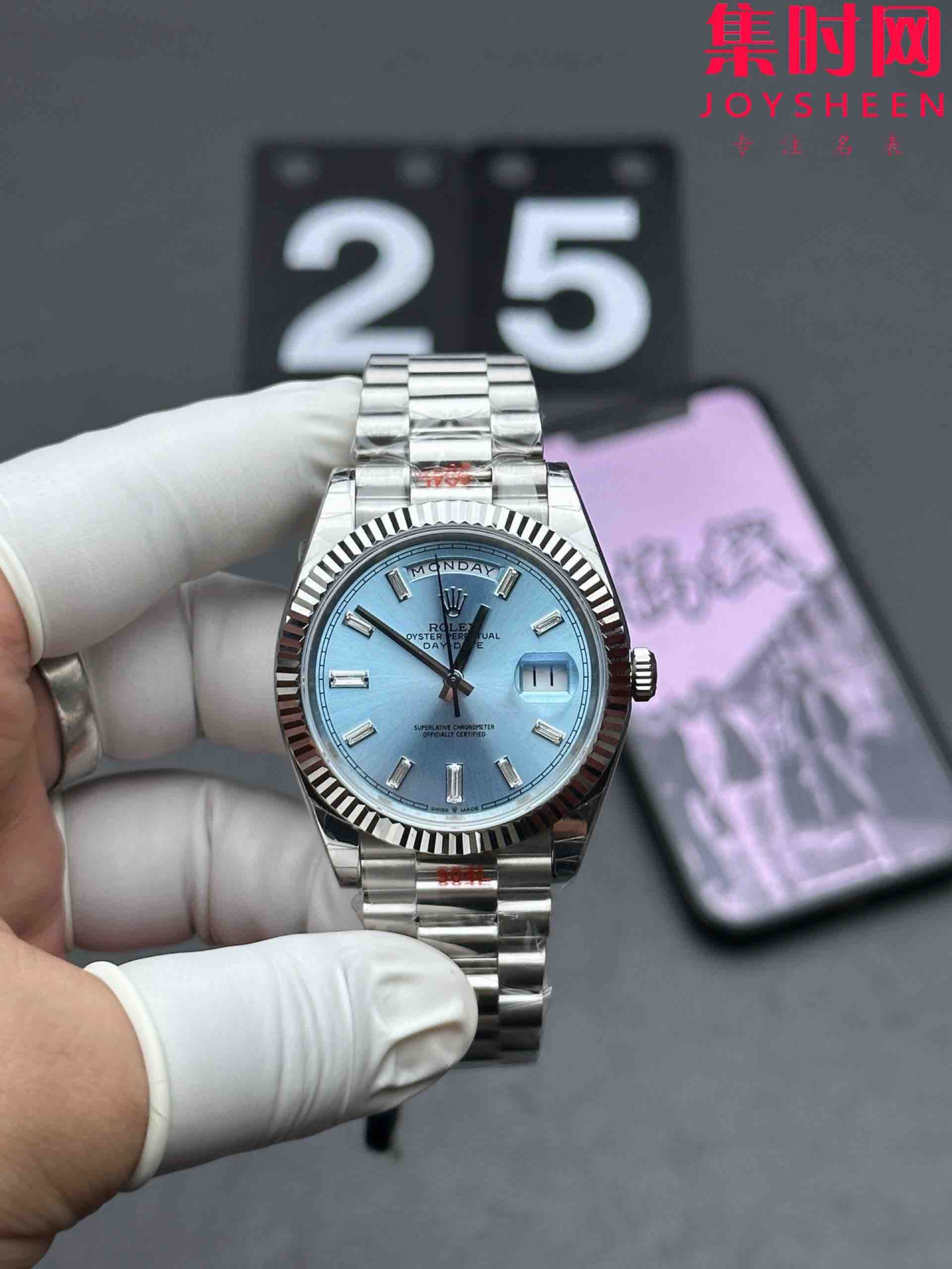 EWS劳力士星期日历型系列 冰蓝T钻 日志40mm 款式:男士腕表
