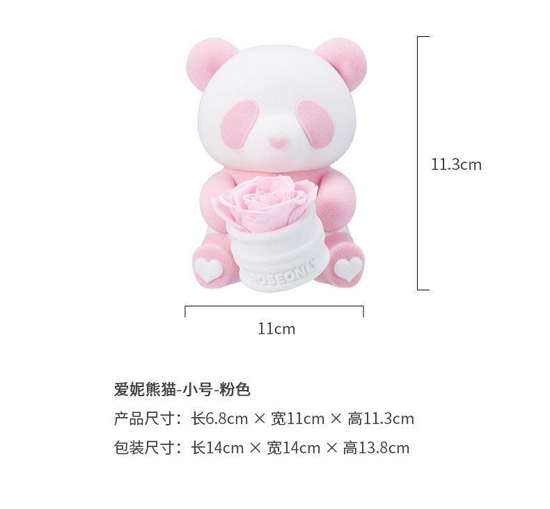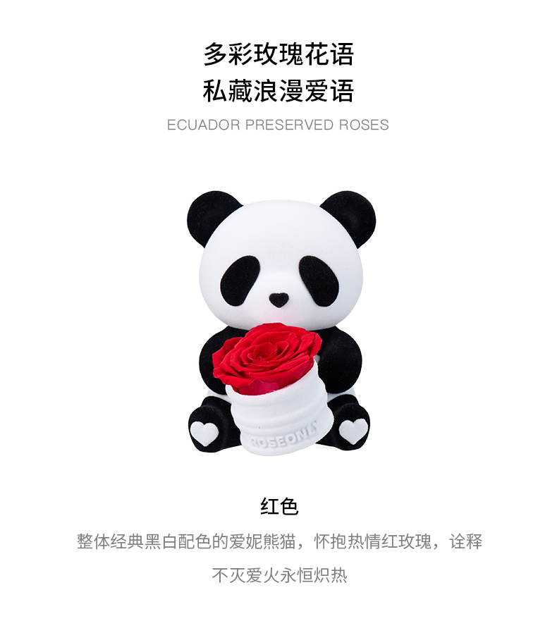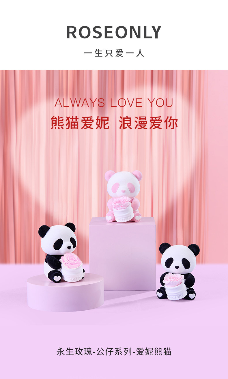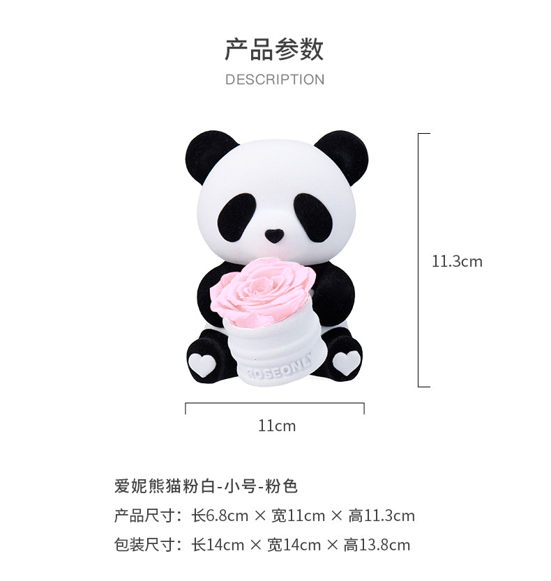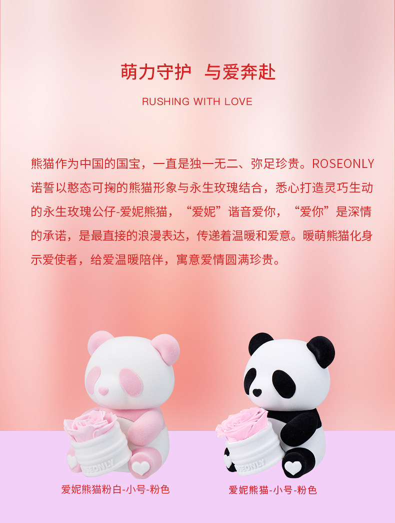 【告白神器】ROSEONLY诺誓 永生玫瑰 公仔系列 爱妮熊猫 粉色 红色 粉白色 送朋友 情人节礼物