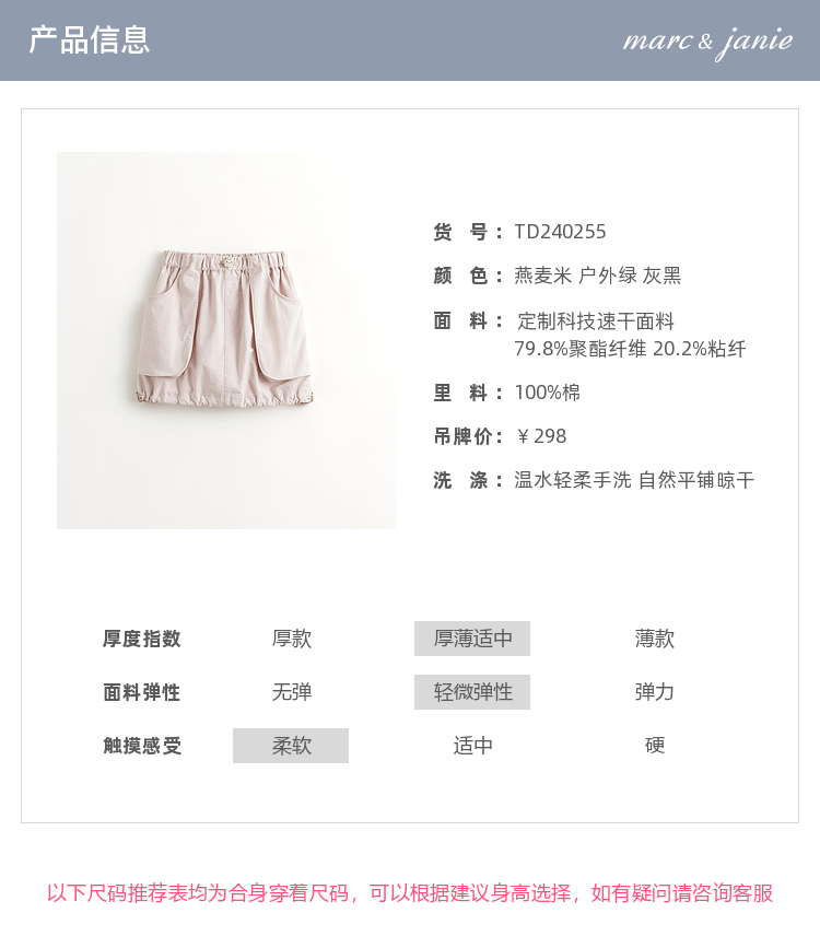 【吸湿速干】马克珍妮女童城市户外花苞工装短裙半身裙春装240255