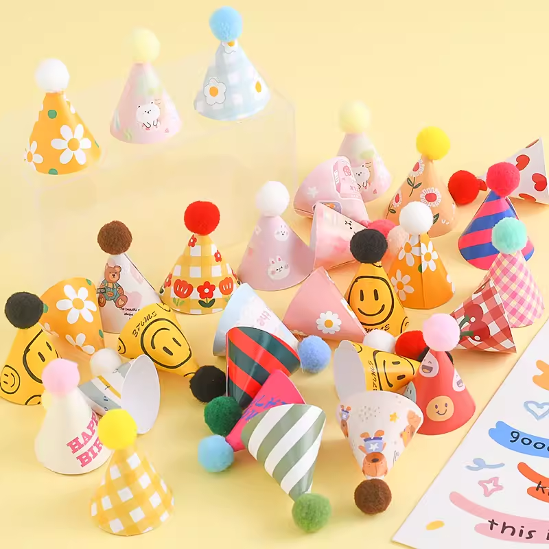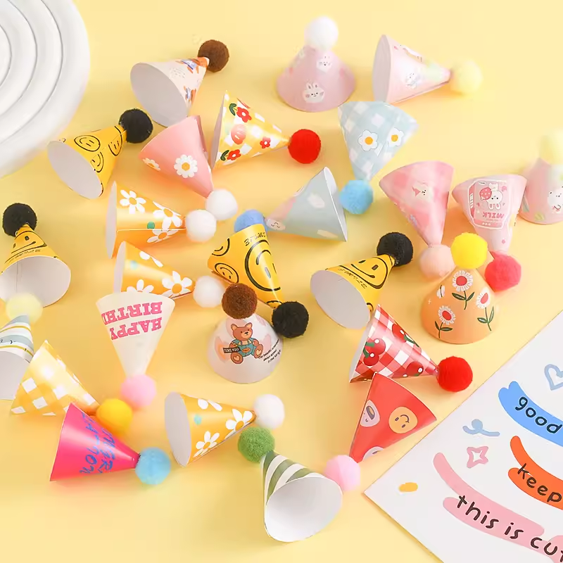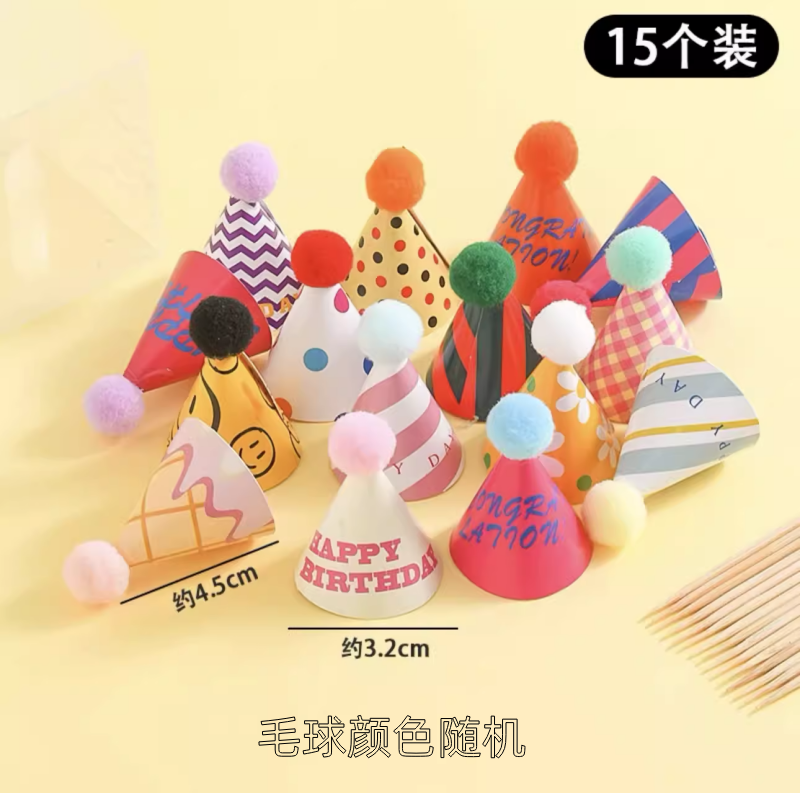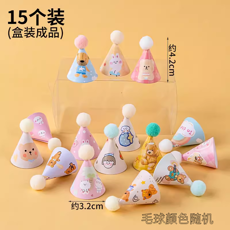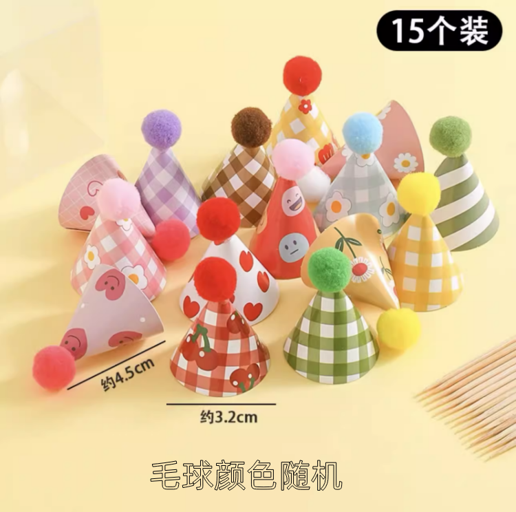 成型小帽子插件15入 毛球颜色随机 盒装竹签小帽子装饰插件