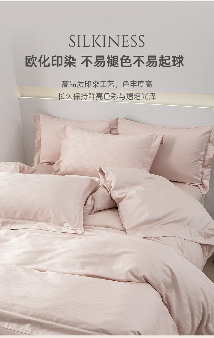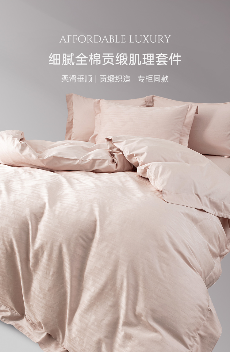 雅芳婷100%全棉床上四件套床笠款纯棉被套轻奢高级感贡缎肌理套件