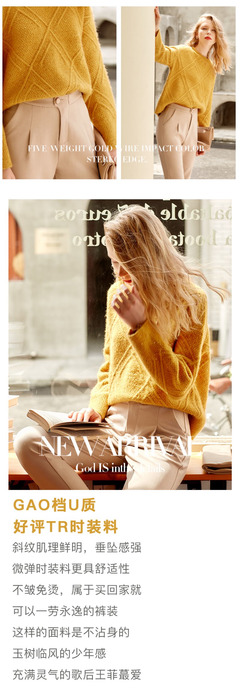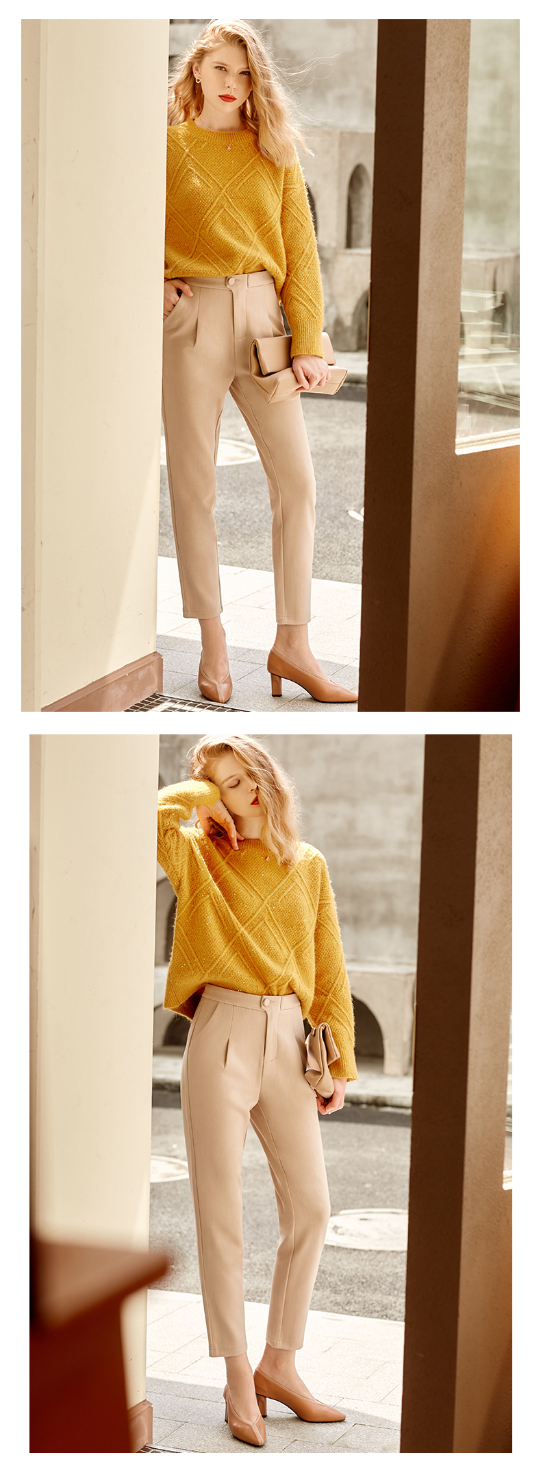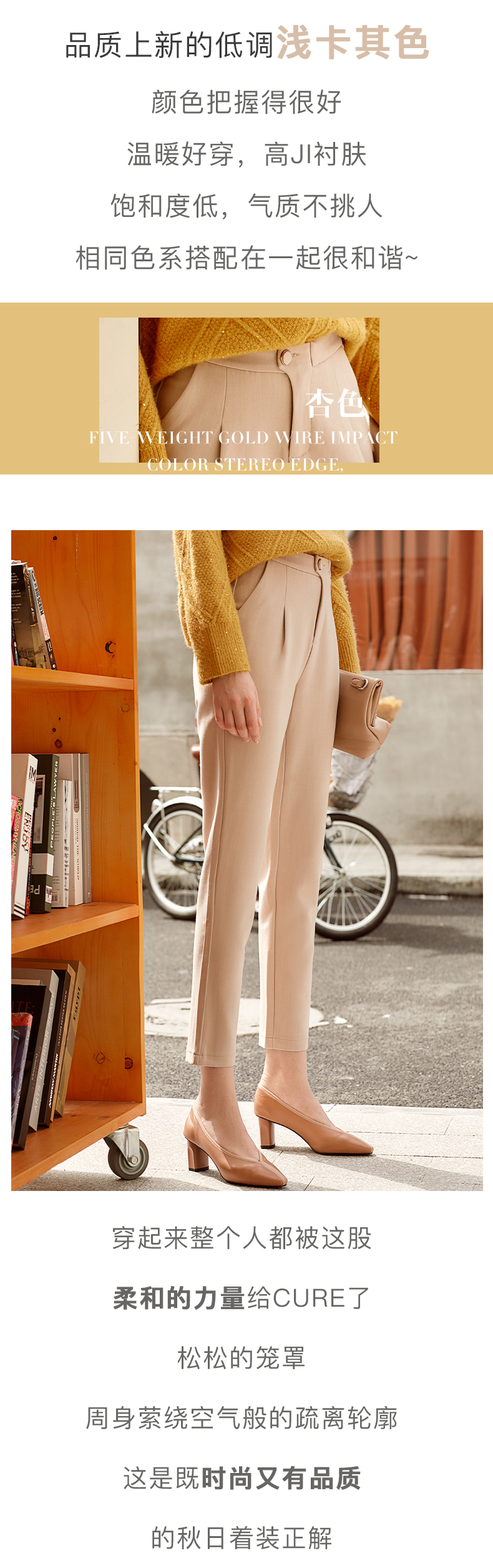 欧芮儿精致斜边纽扣高腰显瘦休闲女春季新款职业OL九分小脚裤