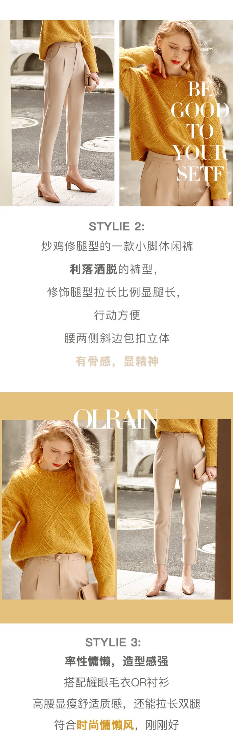 “精致”是欧芮儿olrain品牌文化的核心,欧芮儿认为,精致的女人,不但要外在动人,更要内在迷人,内外兼修,有魅力、有气质、有内涵,自信而不自傲,优雅而不矫揉,自有万种风情而不轻浮,更不故作矜持。