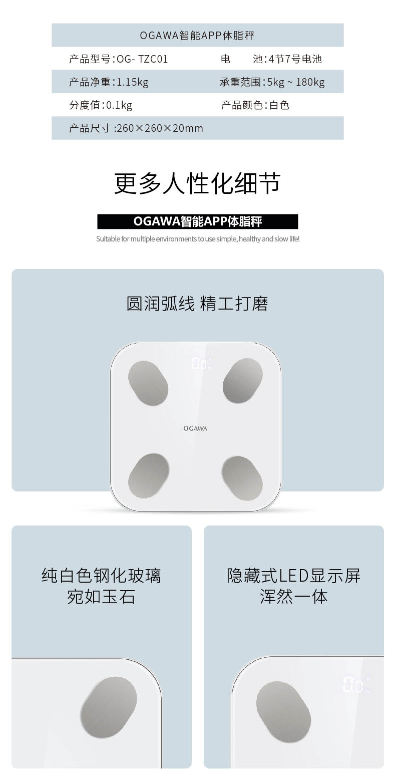 OGAWA智能APP体脂秤型号: OG- TZC01