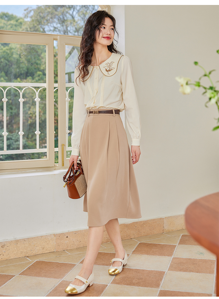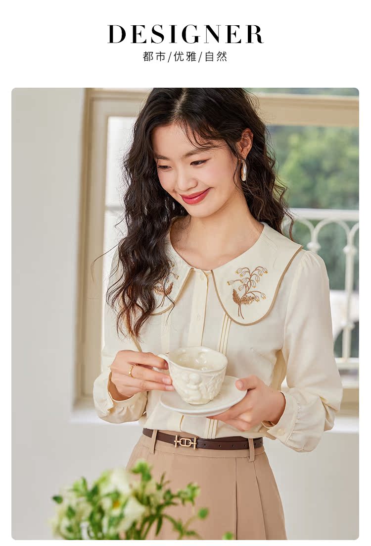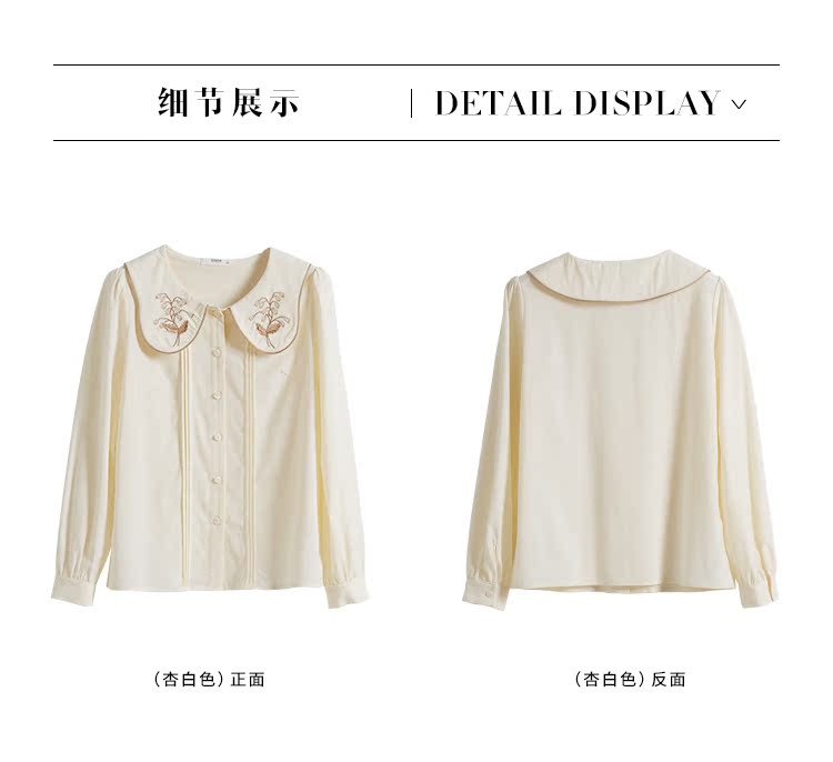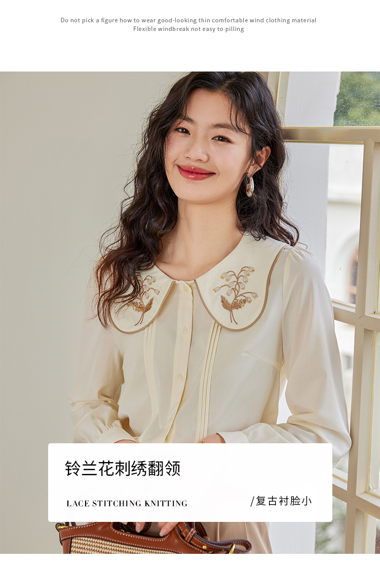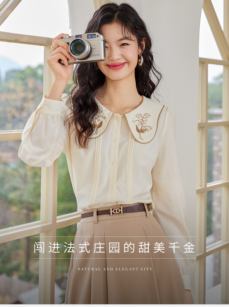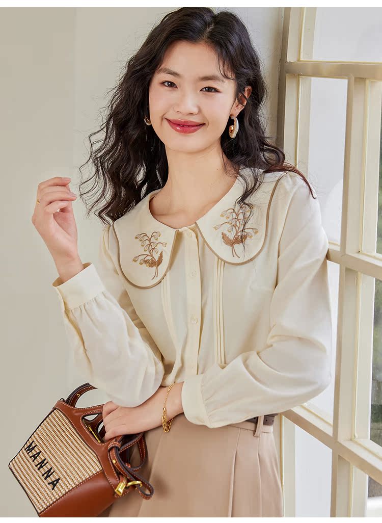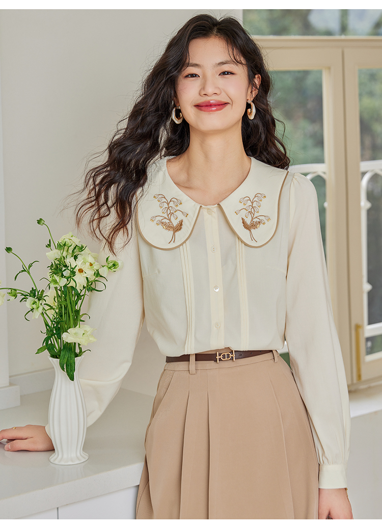 【年终特卖】熙世界法式复古宫廷风长袖衬衫女小众设计刺绣翻领上衣2025春新款