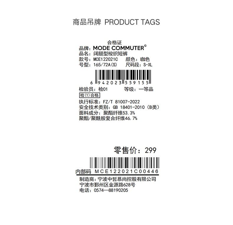 MC |MODE COMMUTER夏季阔腿梭织短裤通勤简约休闲男裤MCE122021C