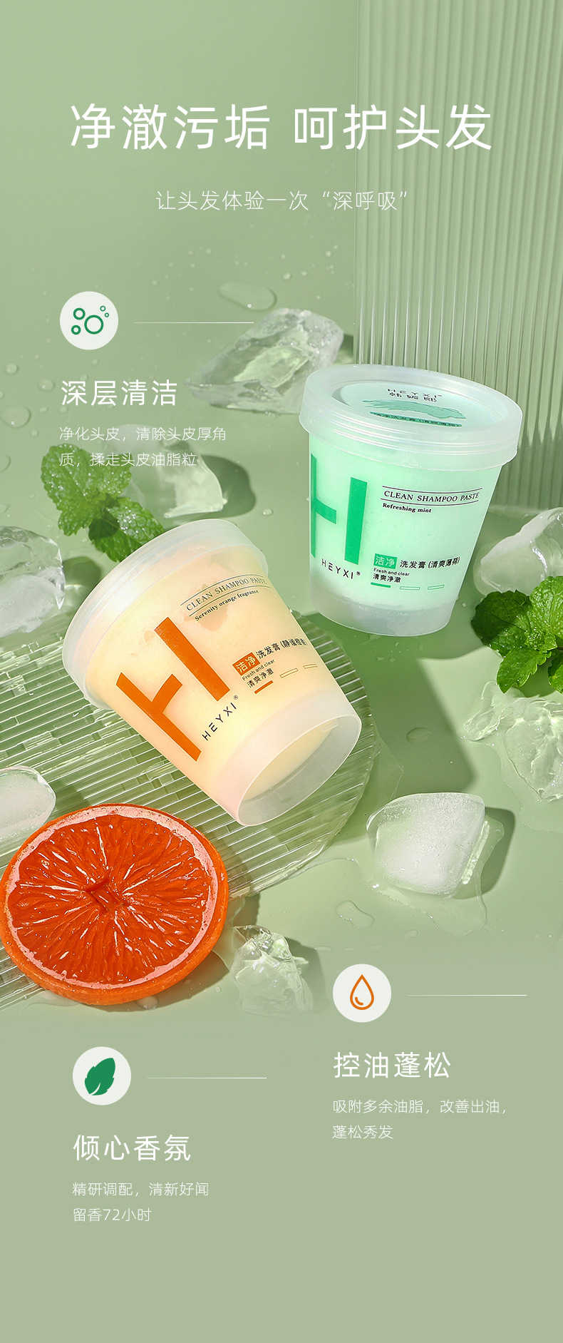 「买1送1!19.9包邮」HEYXI韩媛熙洁净洗发膏 去头皮屑深层清洁磨砂膏蓬松发根护洁发膏