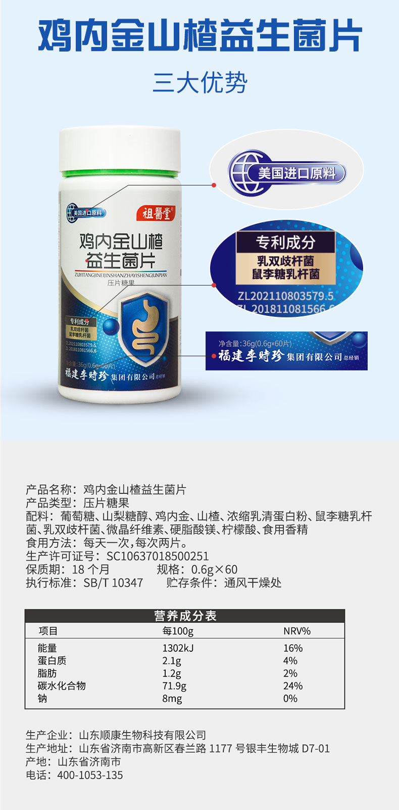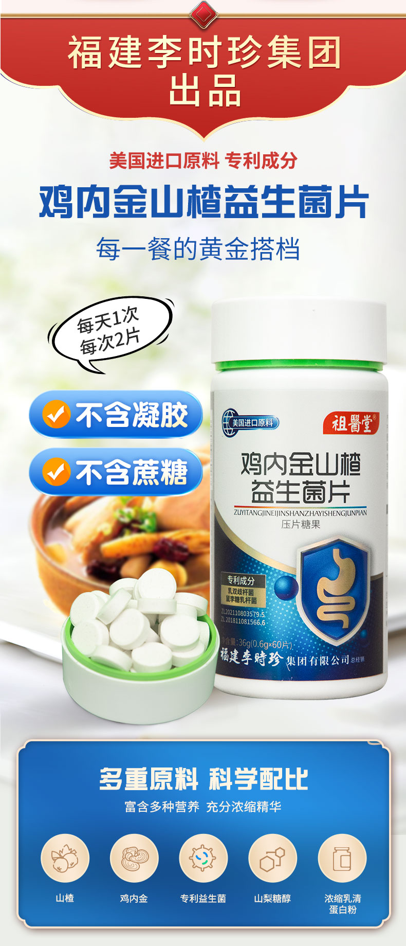 【祖医堂】鸡内金山楂益生菌片 双专利益生菌 助力肠胃 添活力