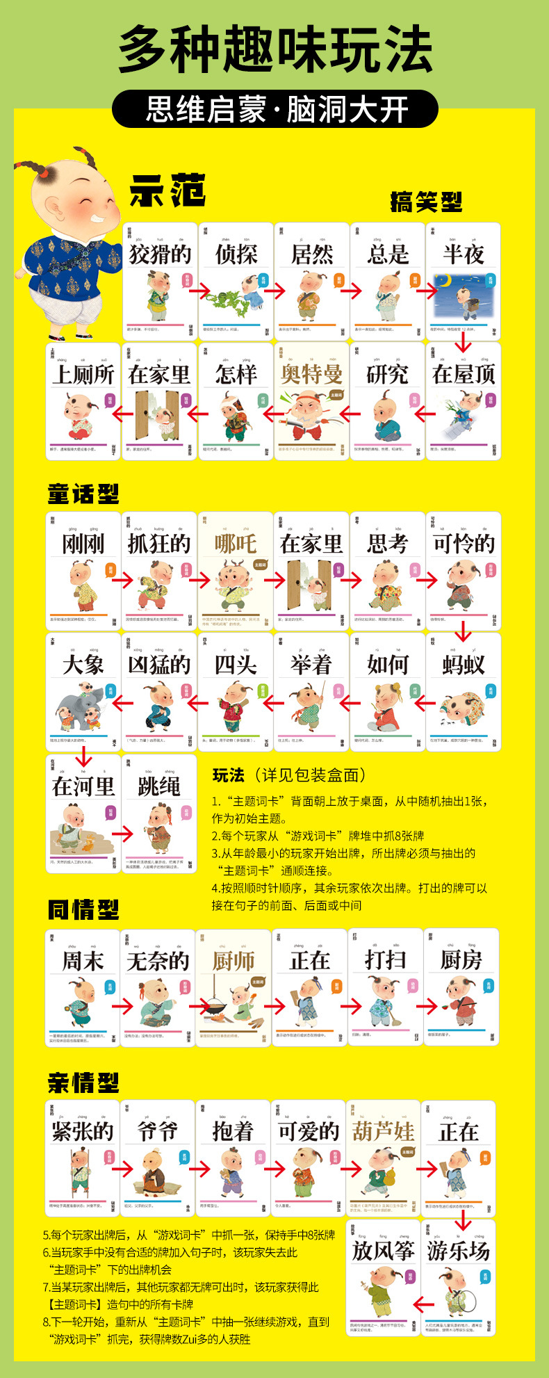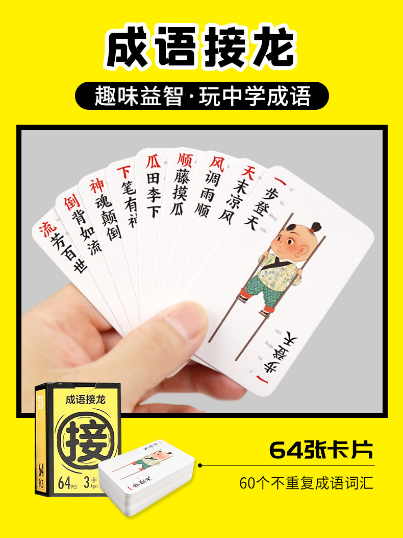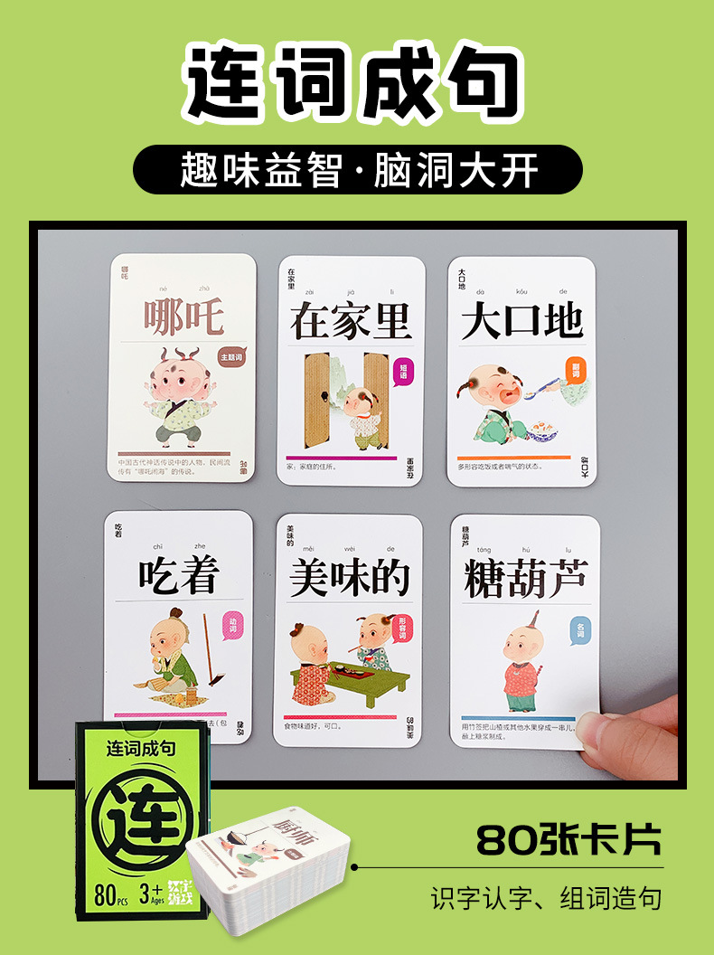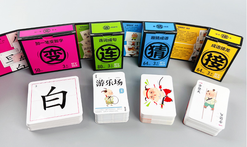 【开拓孩子思维 脑洞大开】汉字游戏卡牌4合1装加一笔变新字连词成句看图猜成语接龙