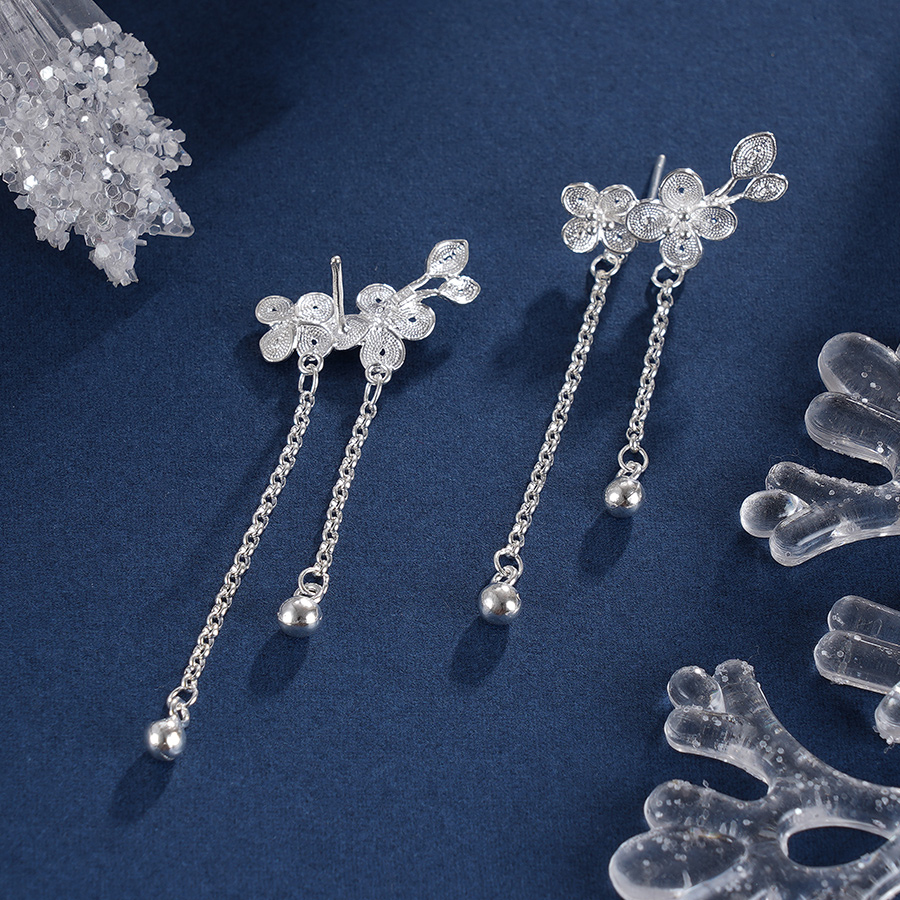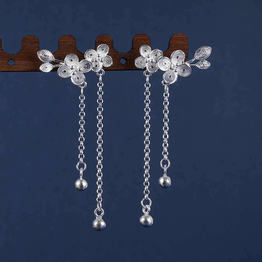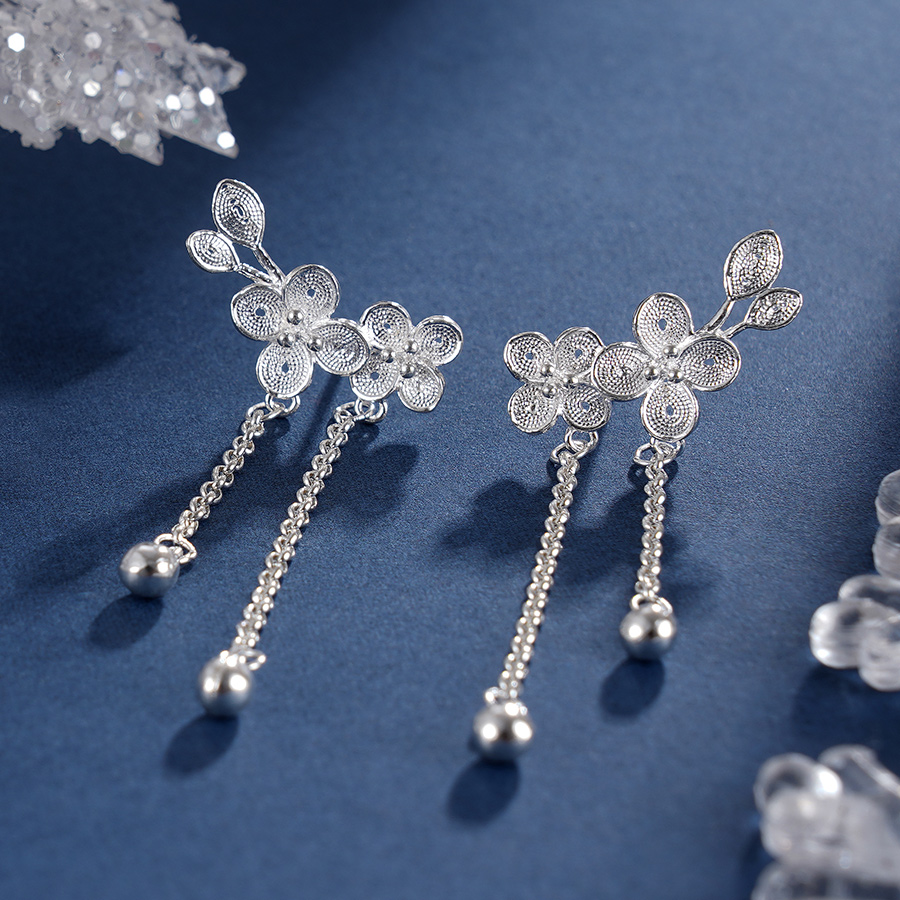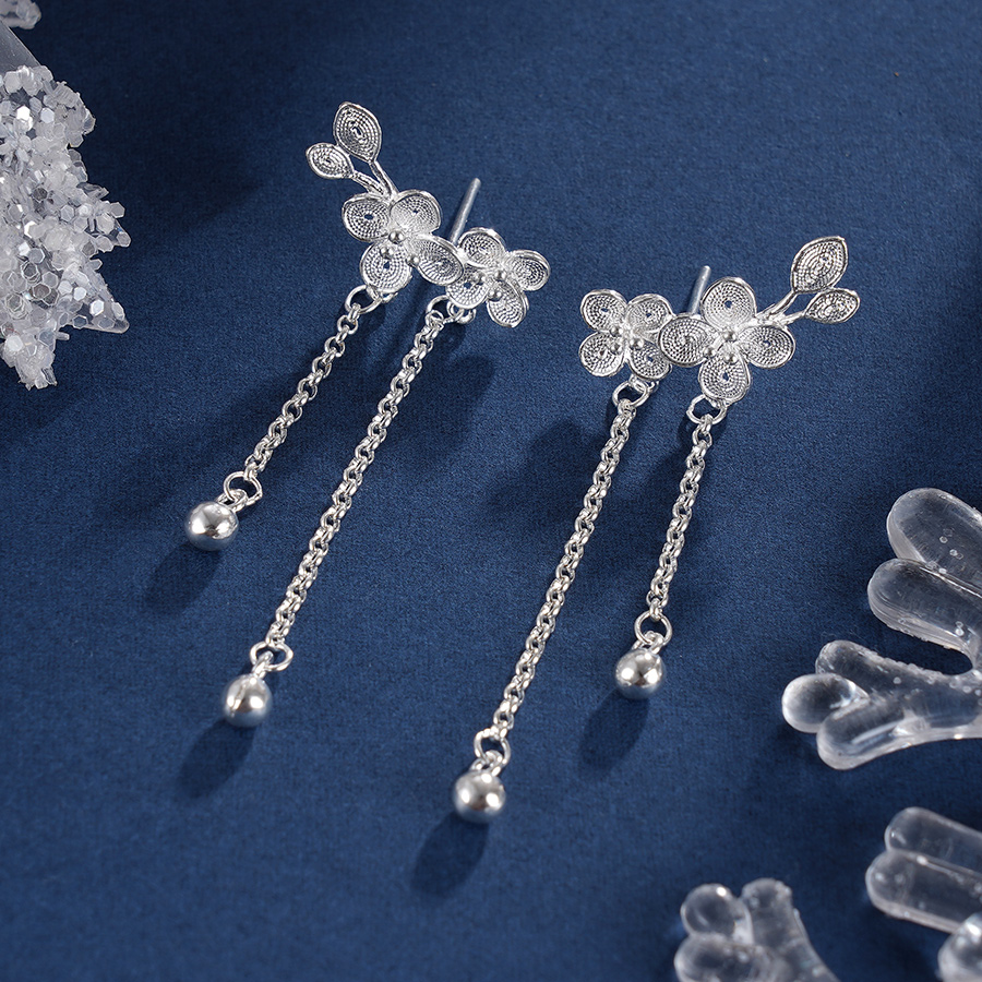 【寓意】:银花丝勾勒出花朵轮廓,嫣然绽放,立体通透,搭配垂坠流苏,冷艳流光,灵动婉转,更添几分优雅韵味。