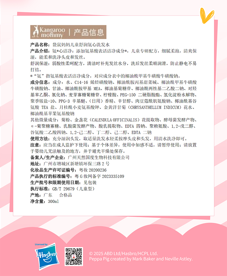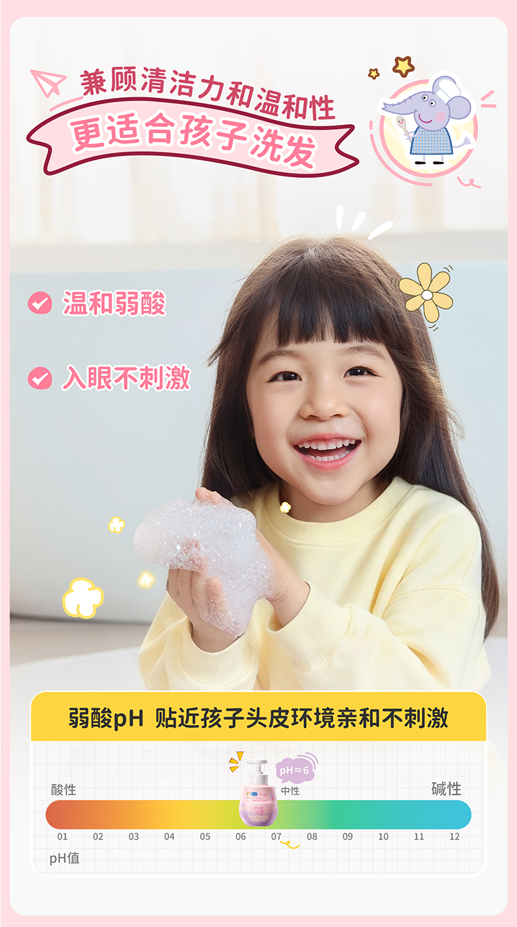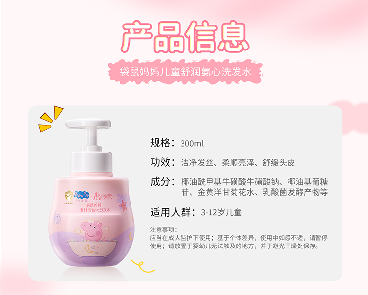 【小猪佩奇联名款】0-12岁宝宝适用 婴童专研配方 氨基酸温和清洁不伤发 婴儿舒润氨心洗发水300ml
