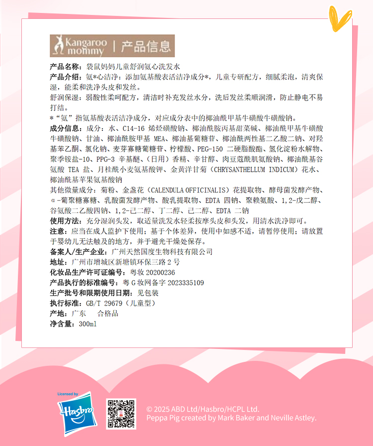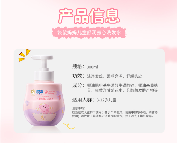 【小猪佩奇联名款】婴童专研配方 氨基酸温和清洁不伤发 婴儿舒润氨心洗发水300ml