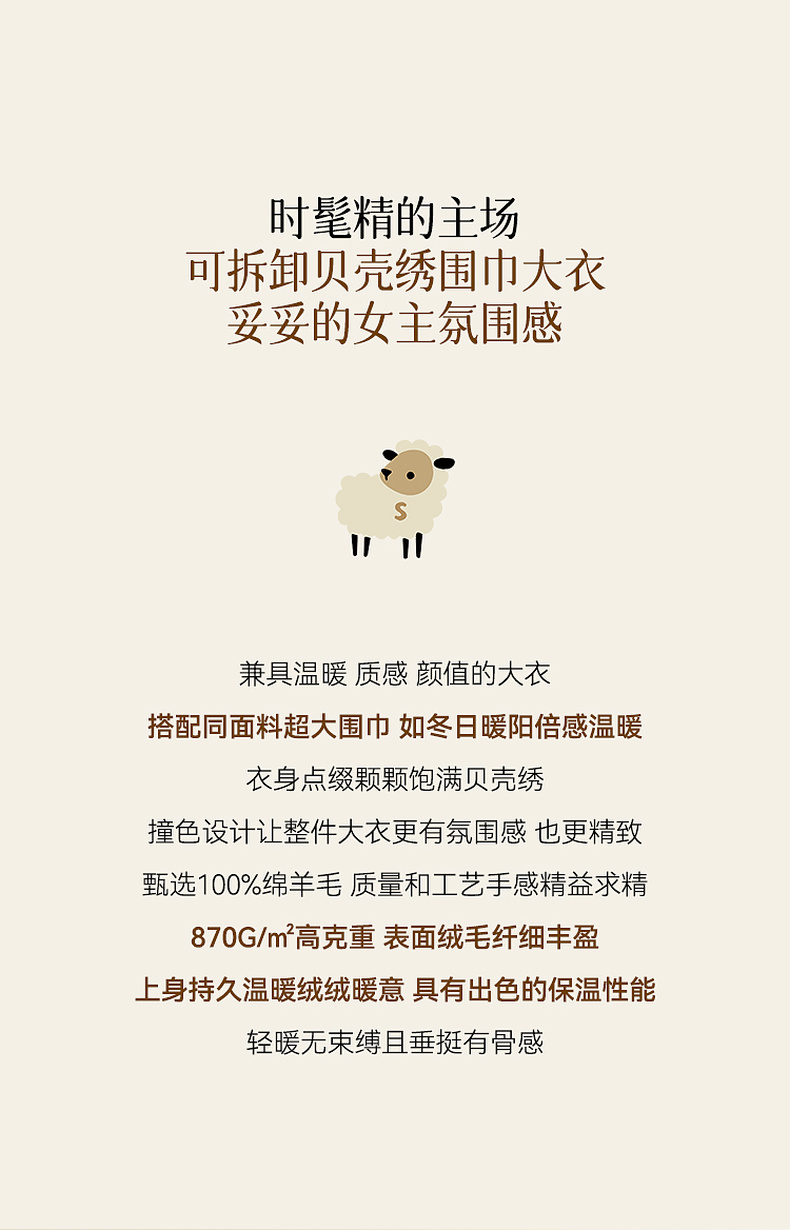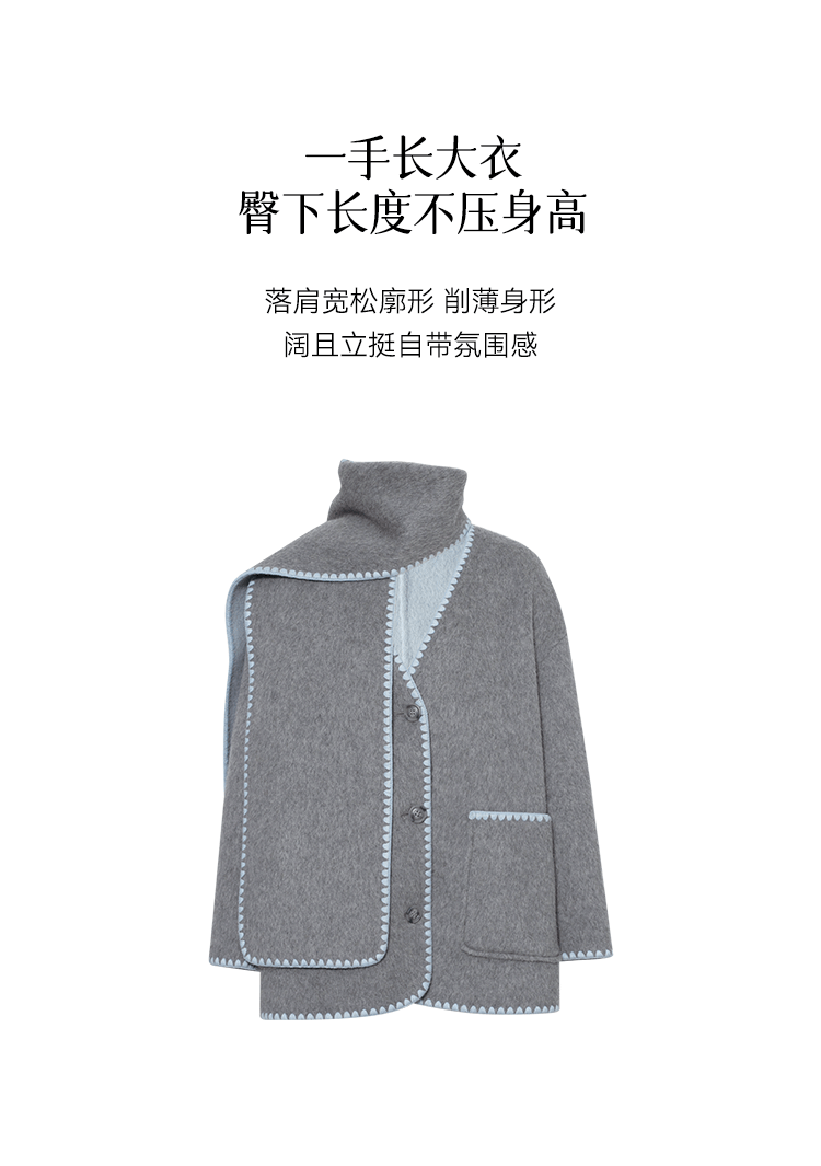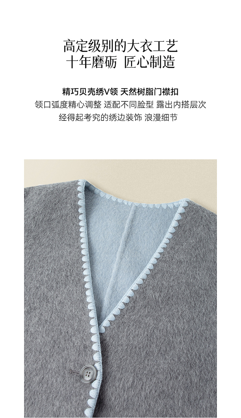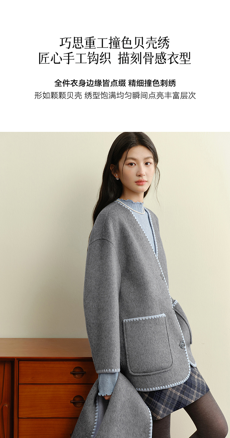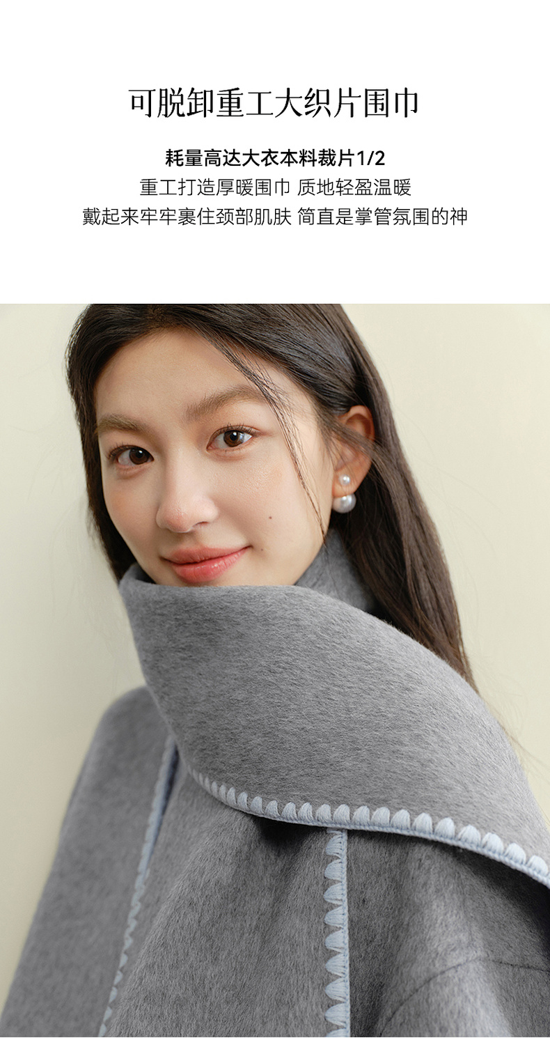【严选】【薄雾微光】诗凡黎贝壳绣围巾大衣2025冬新款全羊毛双面呢外套女7GB470891