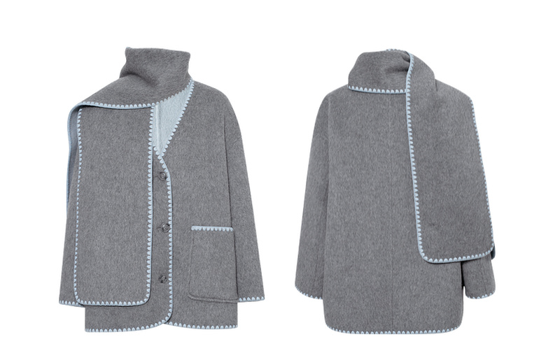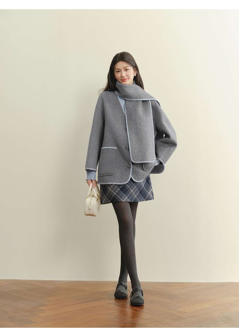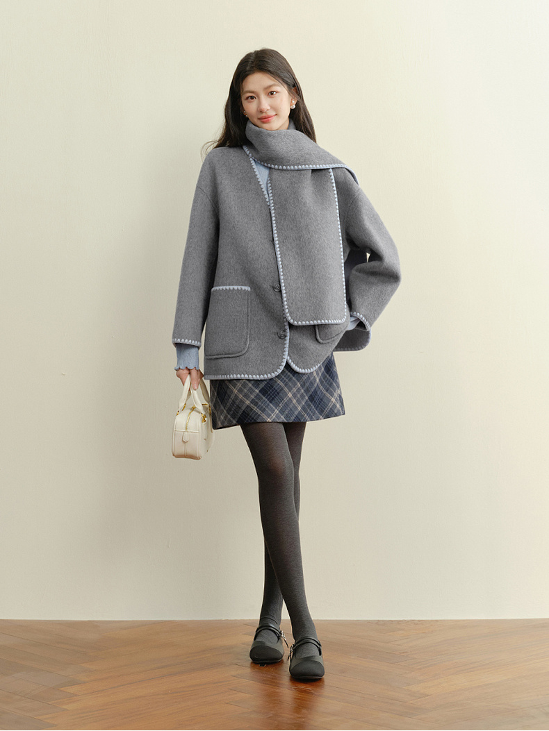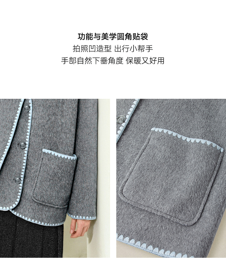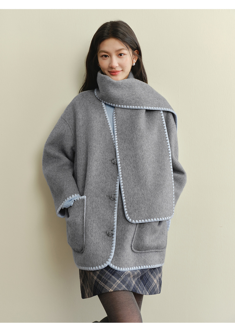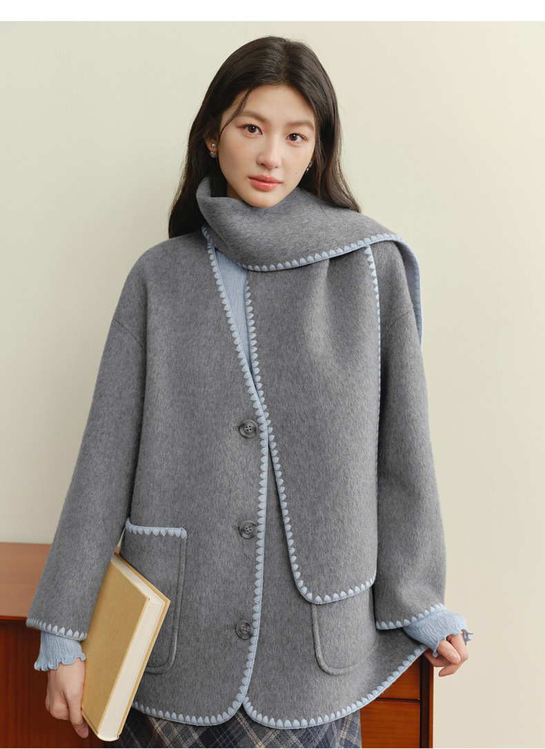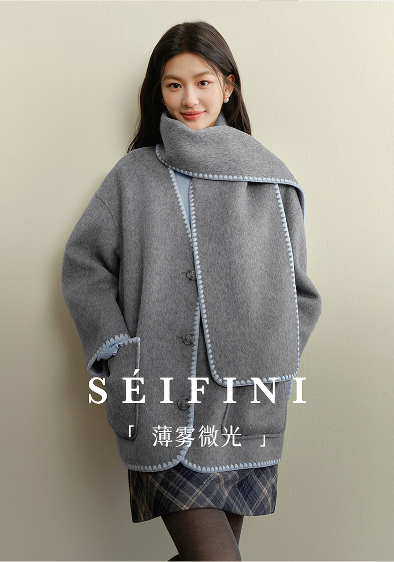 【严选】【薄雾微光】诗凡黎贝壳绣围巾大衣2025冬新款全羊毛双面呢外套女7GB470891