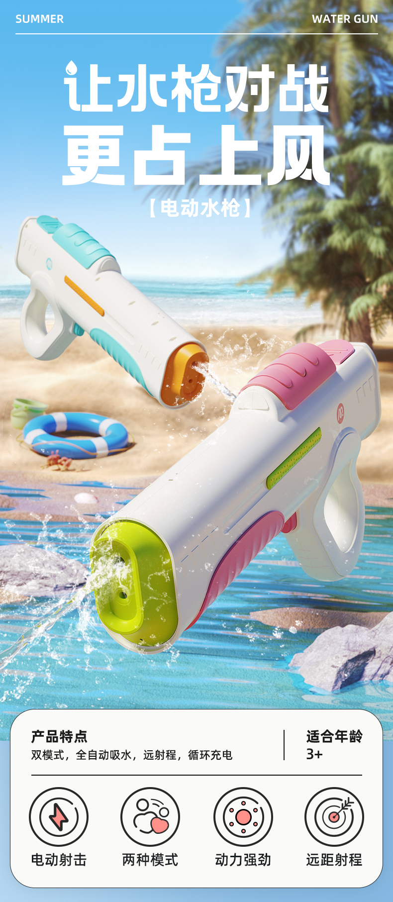 mideer弥鹿电动连发水枪高压强力喷水儿童新款自动吸水呲水枪玩具