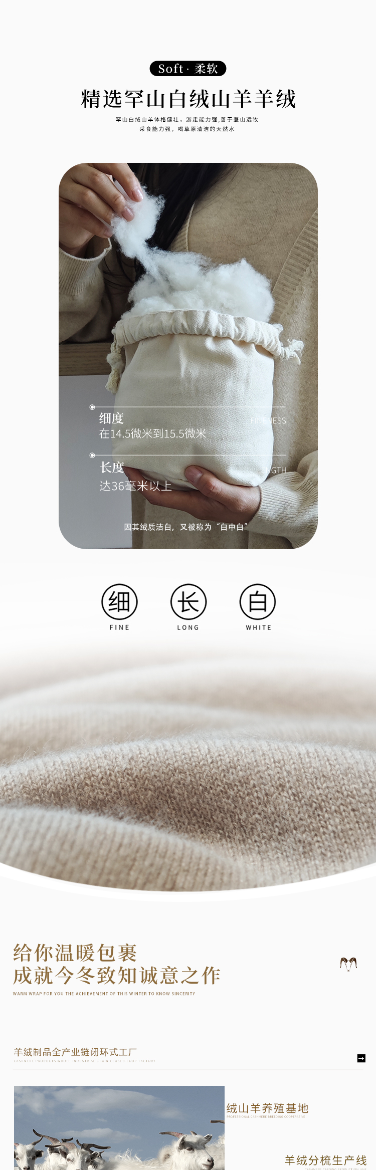 东黎羊绒是赤峰东荣集团自主品牌,自有牧场/羊绒制品全产业链优势,实现了羊绒从“牧场”到“商场”的华丽转变。