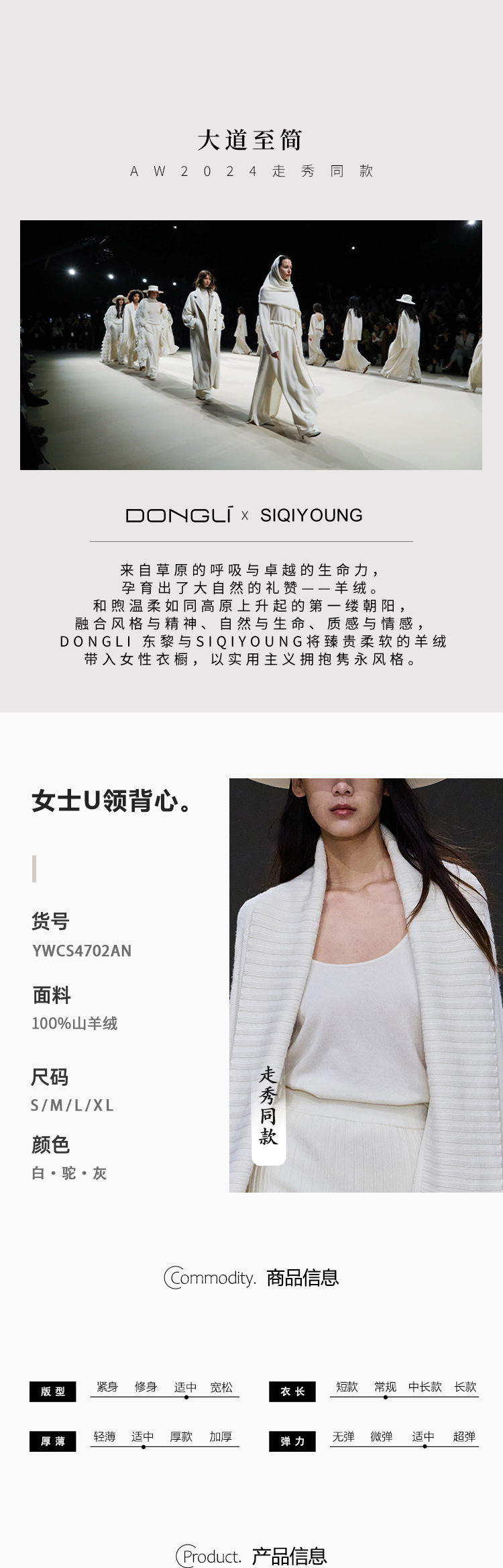 东黎 •山羊绒女士春秋精纺打底背心 4702