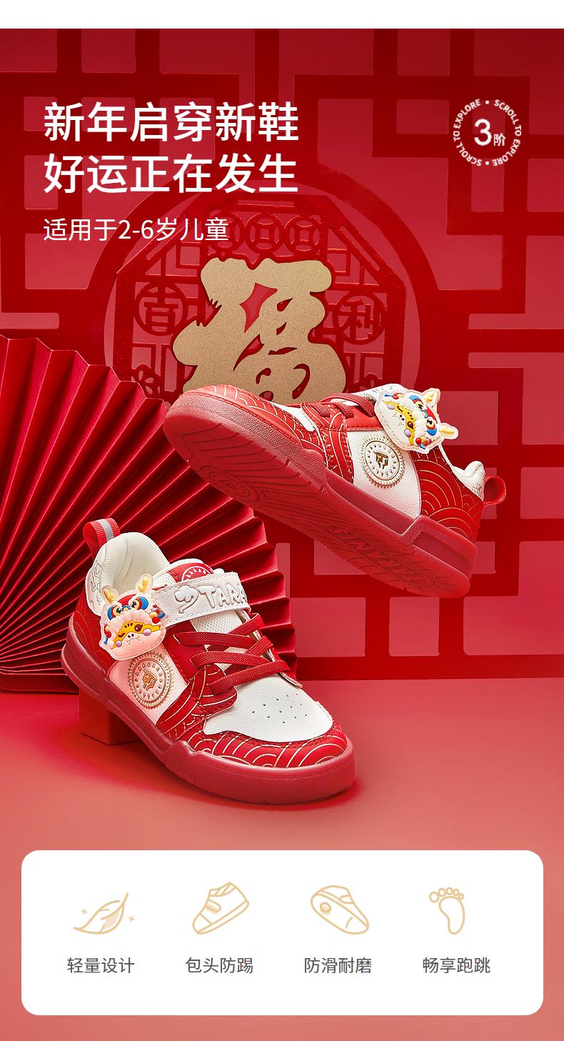 泰兰尼斯童鞋冬季新款新年限定款儿童板鞋男童轻弹舒适运动鞋女童 T02X5A6176