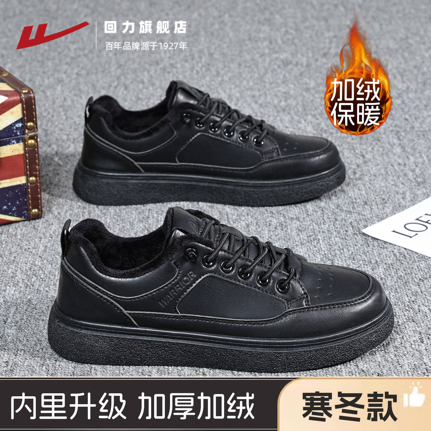 回力男鞋2025新款秋冬男士休闲鞋百搭运动鞋子防泼水男款加绒皮鞋