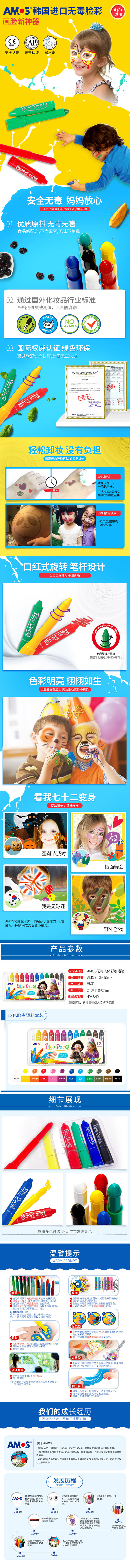 韩国进口AMOS儿童人体彩绘笔 无毒可水洗12色塑料盒装