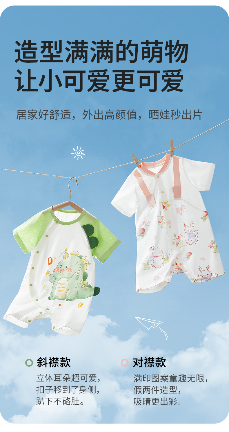 婴儿衣服夏季薄款小月龄多巴胺纯棉空调短袖男宝宝女孩外出连体衣