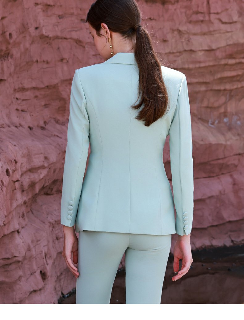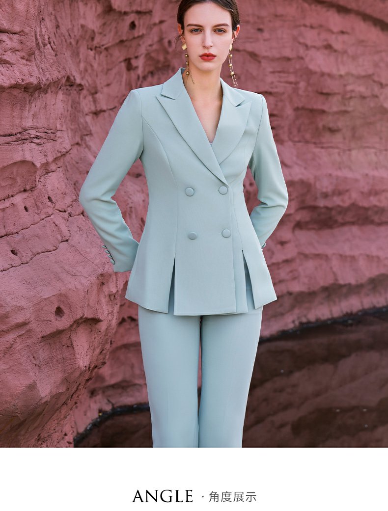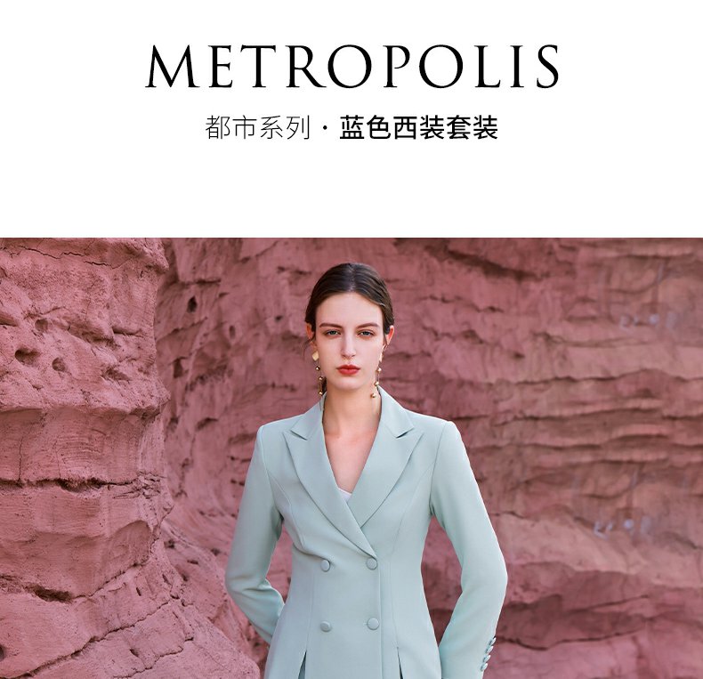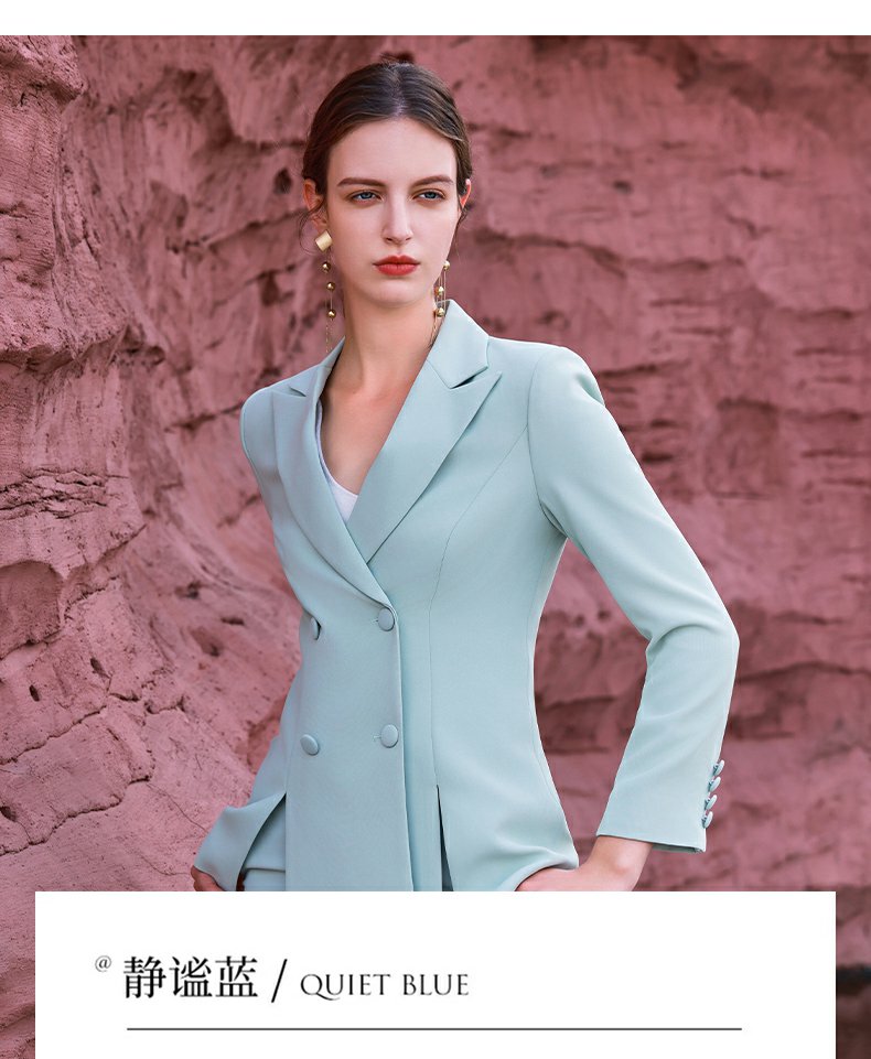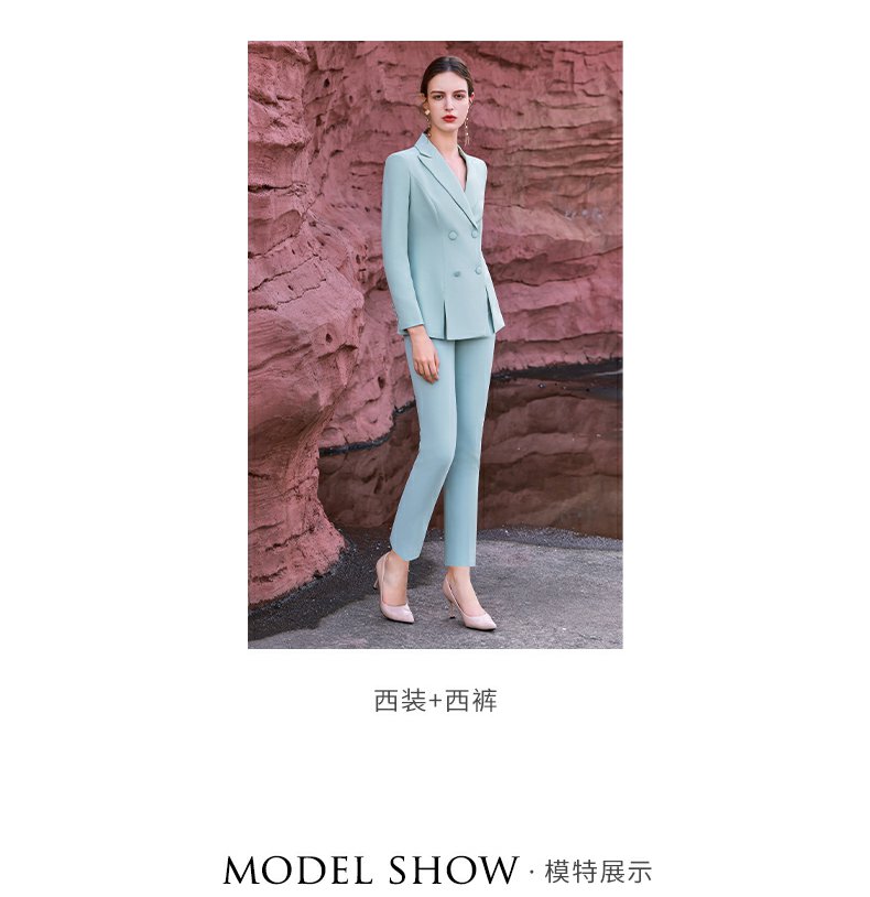 IWY/秋冬新款蓝色工作西服套裤女气质西装外套修身设计感白领C12307+P11385