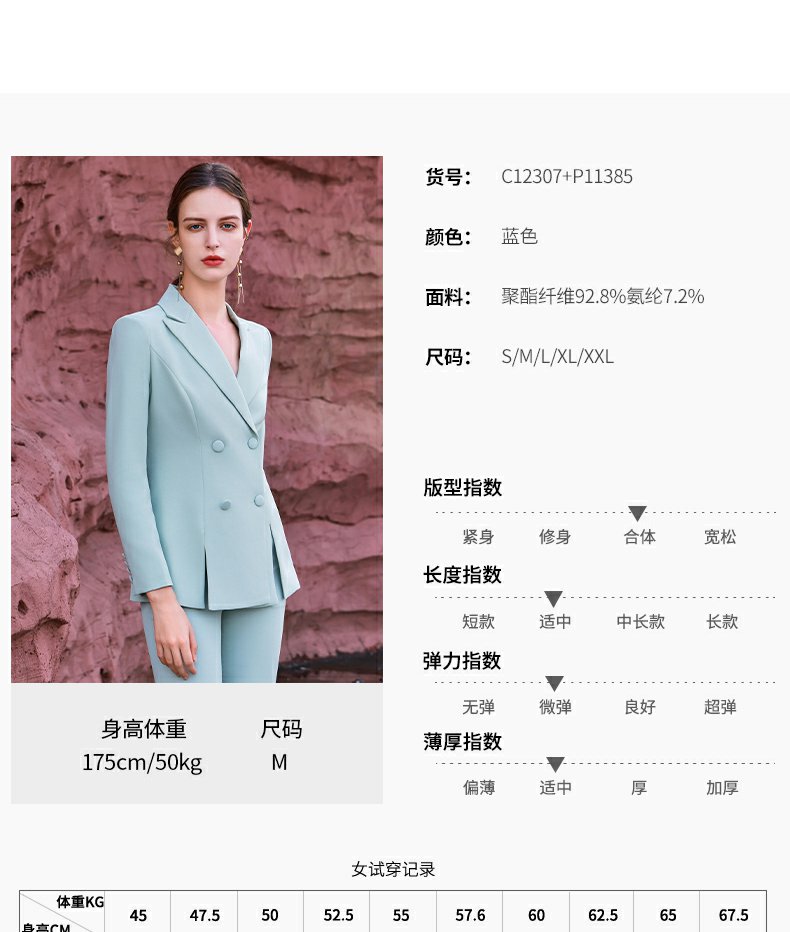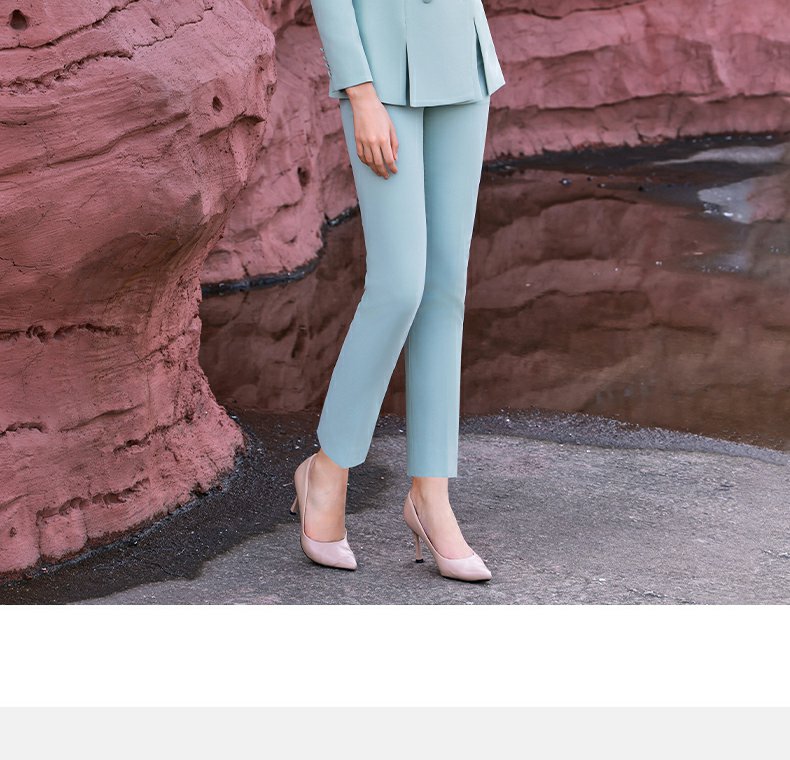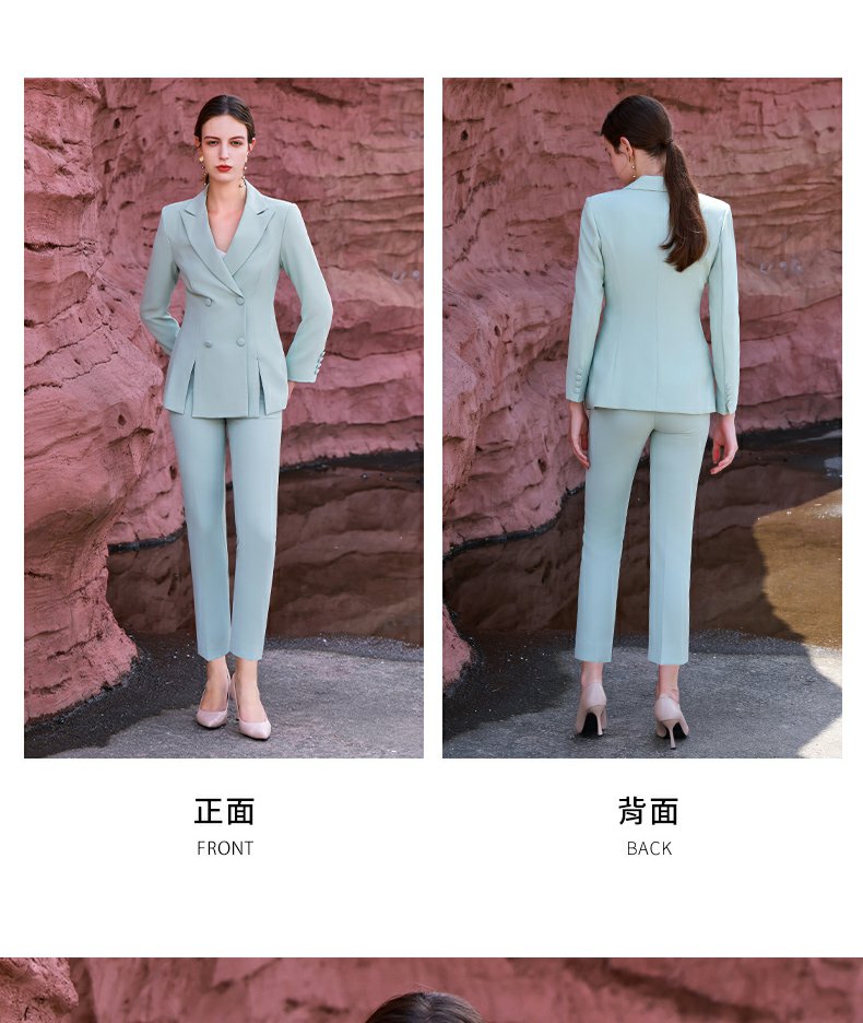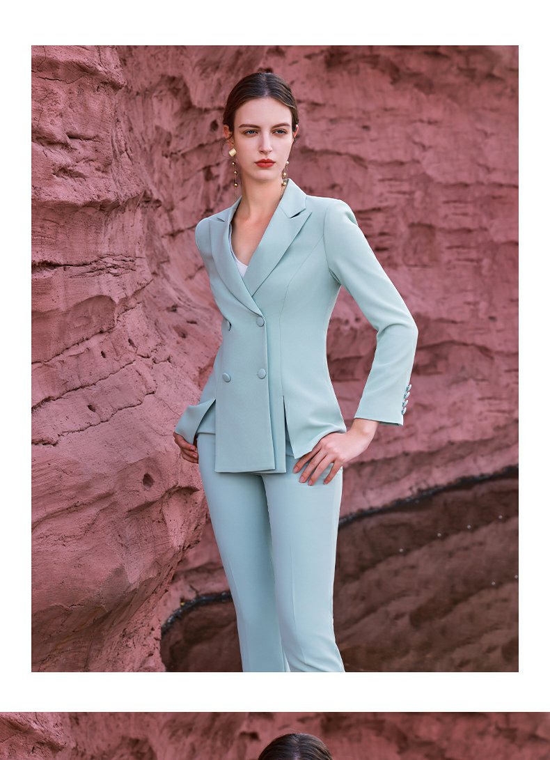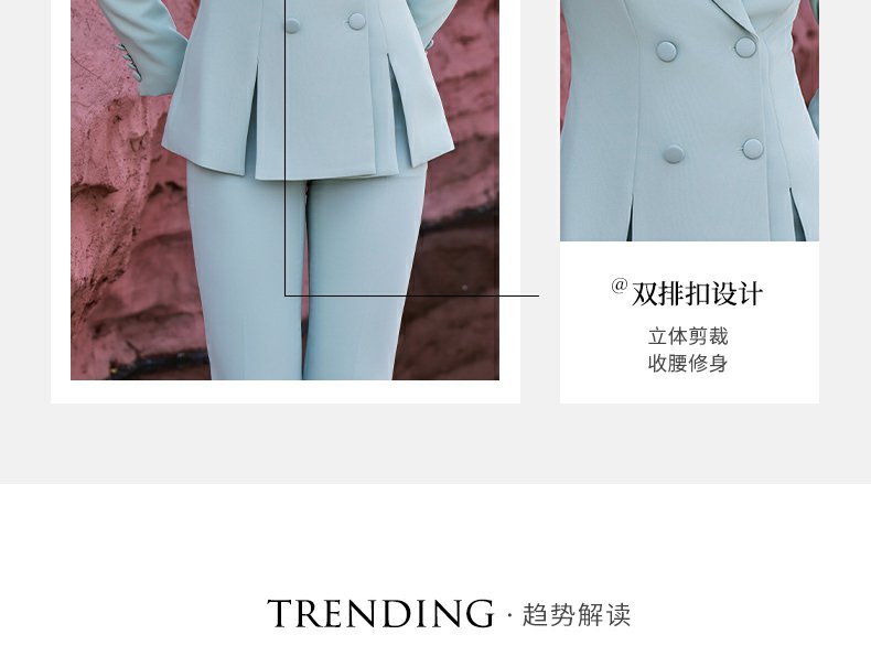IWY/秋冬新款蓝色工作西服套裤女气质西装外套修身设计感白领C12307+P11385