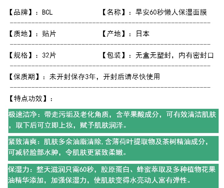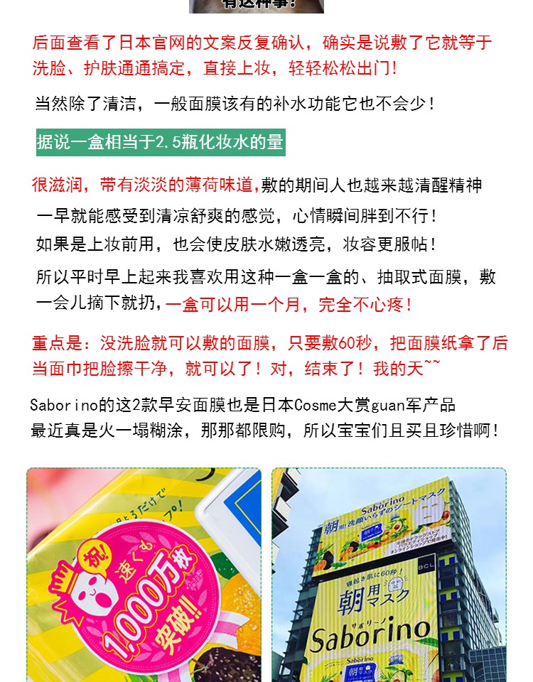 【香港直邮】日本 Saborino 60秒懒人早安面膜 32枚入
