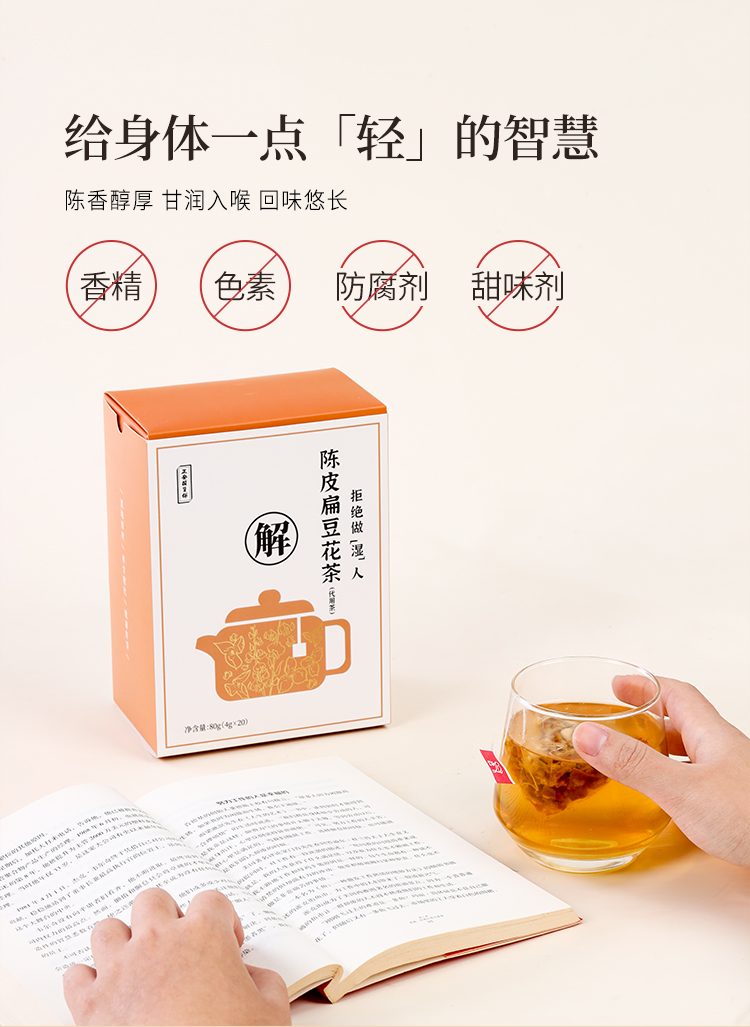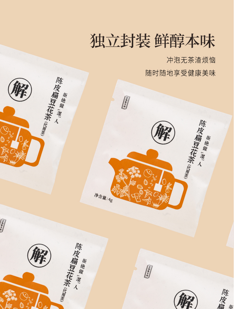 正安 陈皮扁豆花茶 口感清新回甘 湿气中和汤方办公室出游茶饮茶包 抚湿茶80g(4g×20)/盒