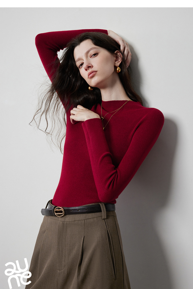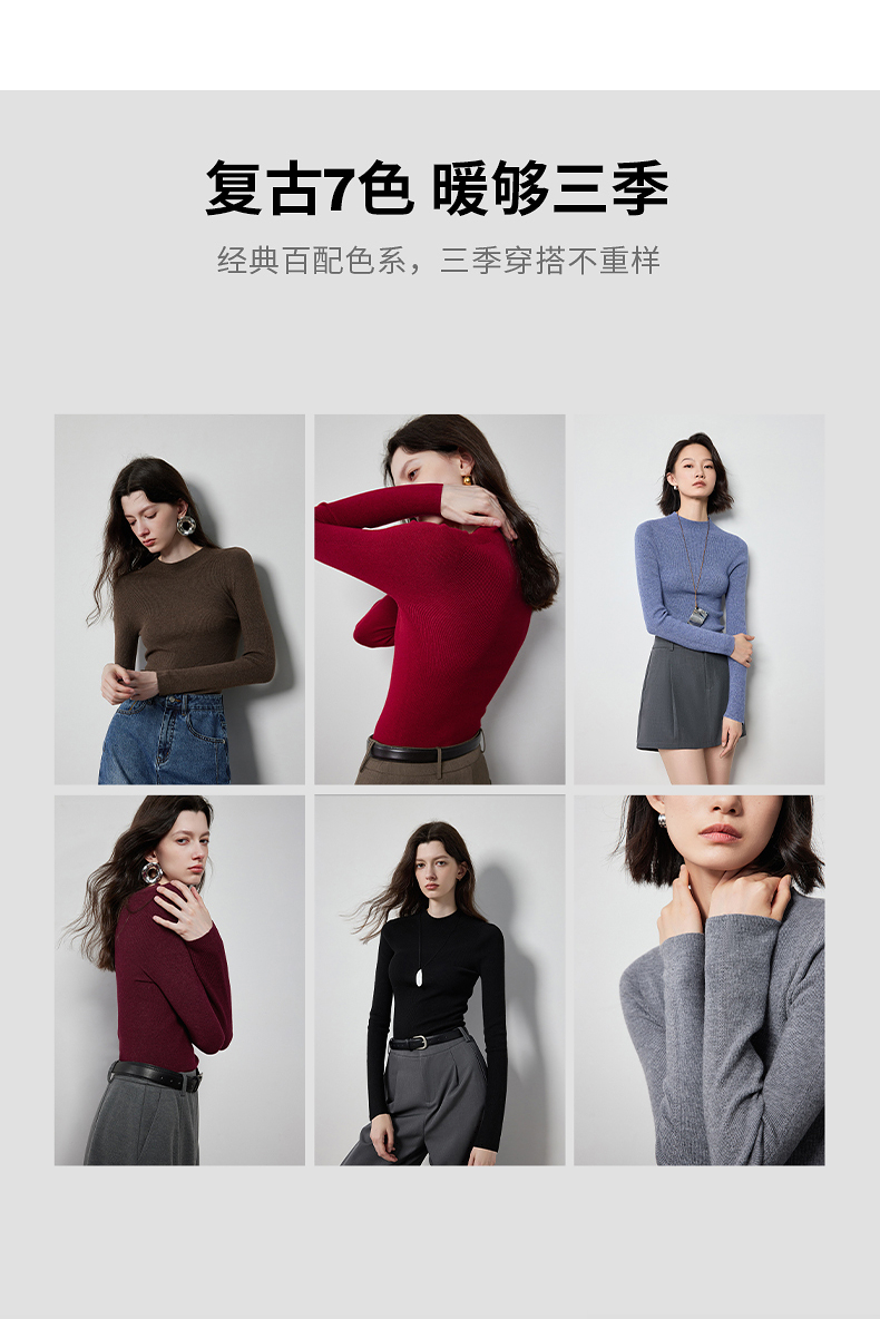 【品牌优选】【小蛮腰针织】初语抗起球仿羊绒打底衫女2024秋冬新款半高领上衣