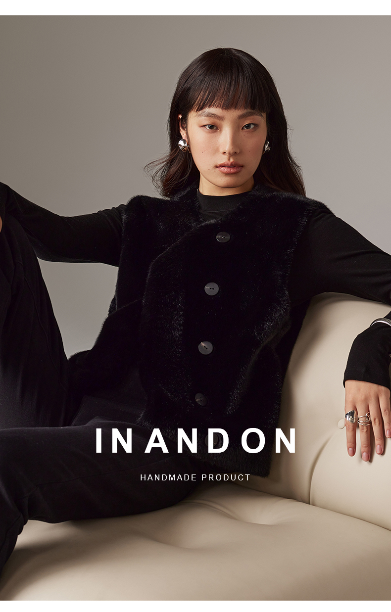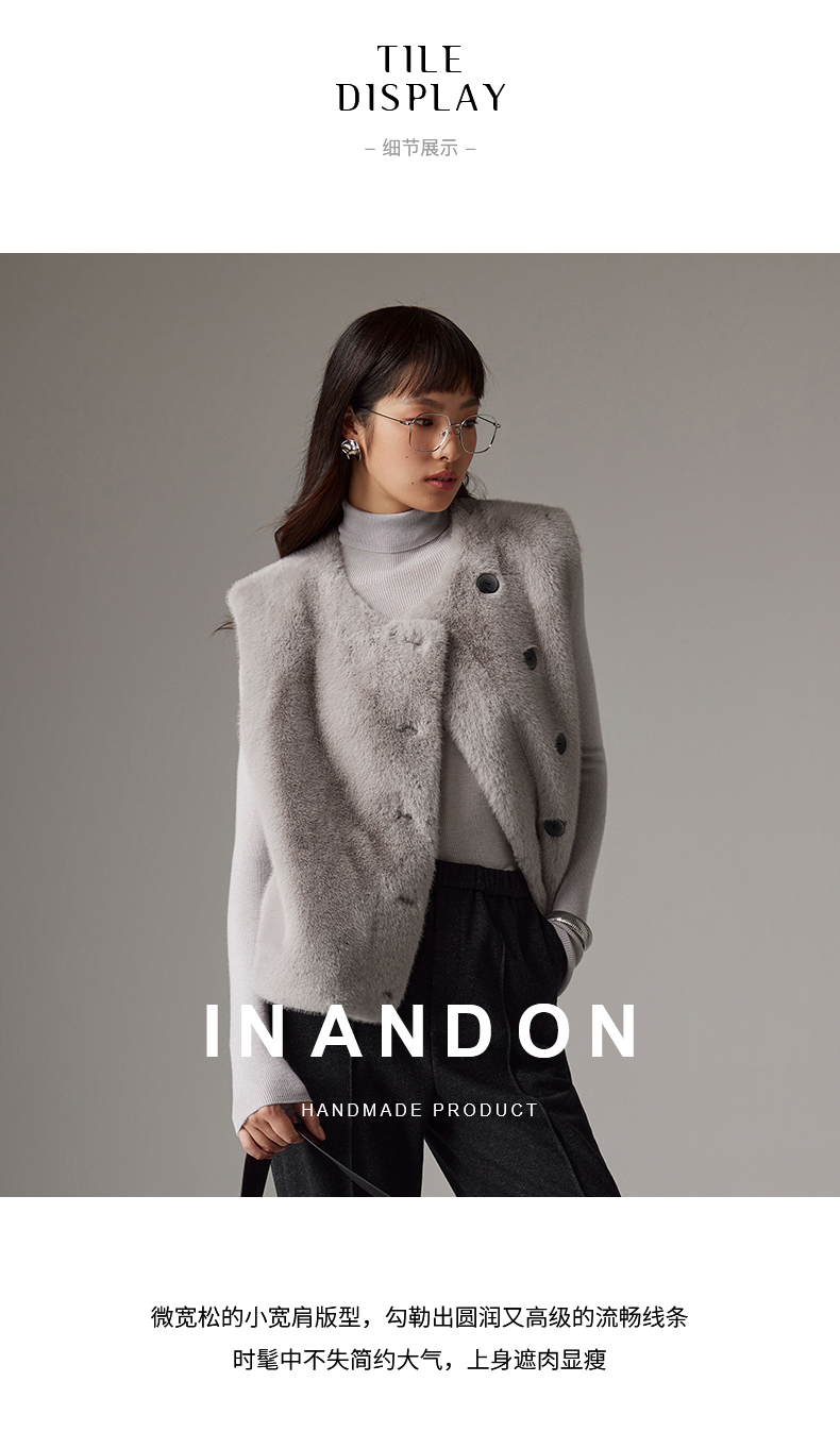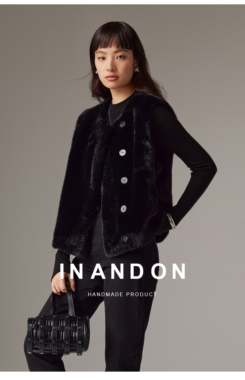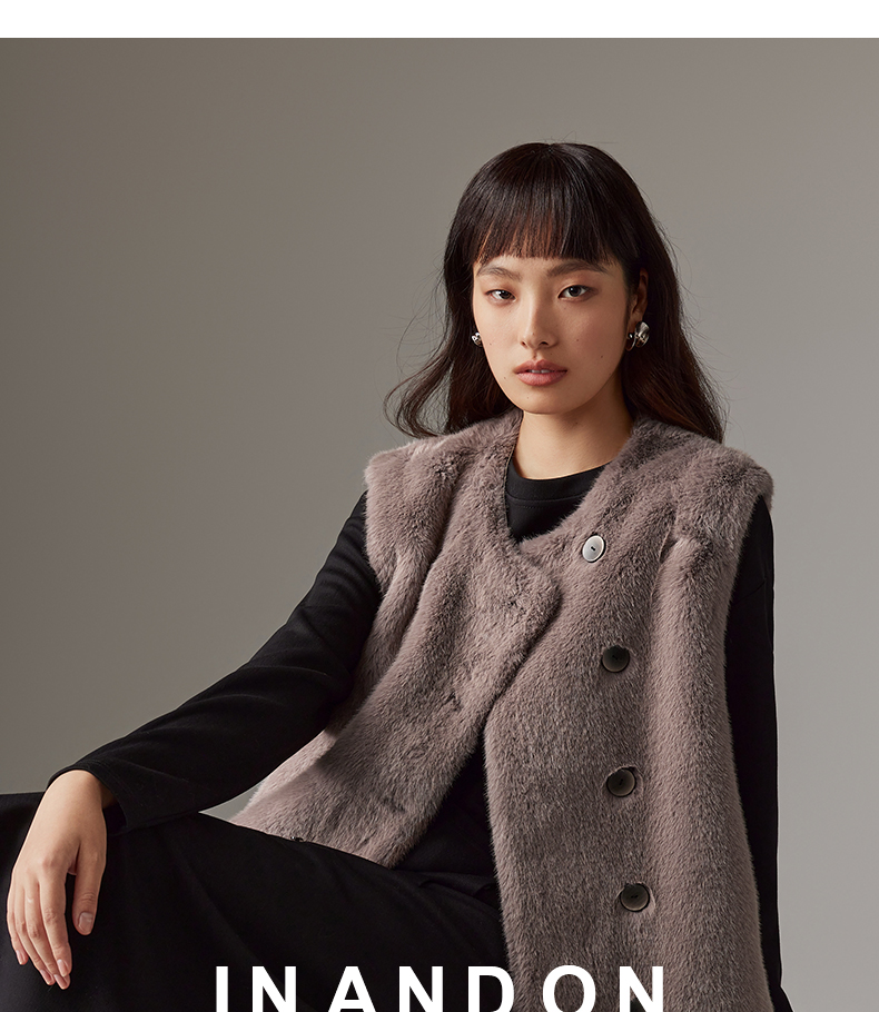 【品牌优选】INANDON 百搭神器 金貂绒皮毛一体圆领马甲 53661