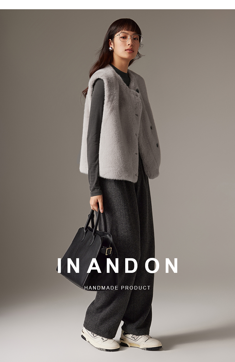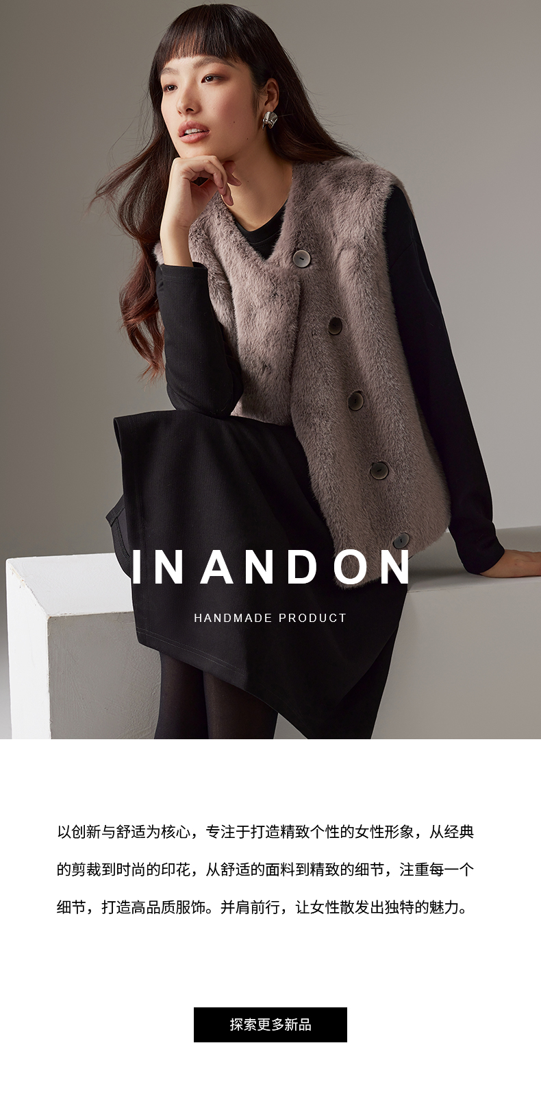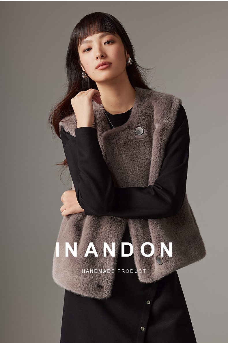 【品牌优选】INANDON 百搭神器 金貂绒皮毛一体圆领马甲 53661