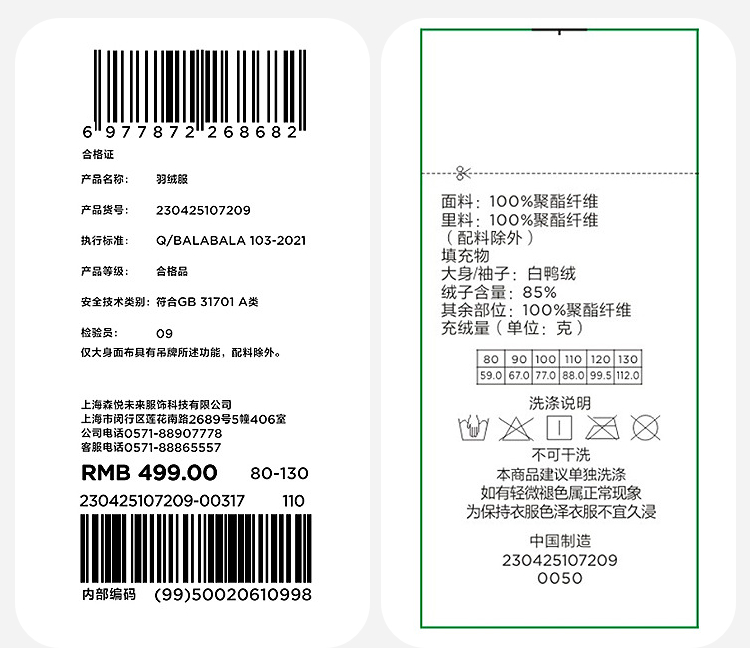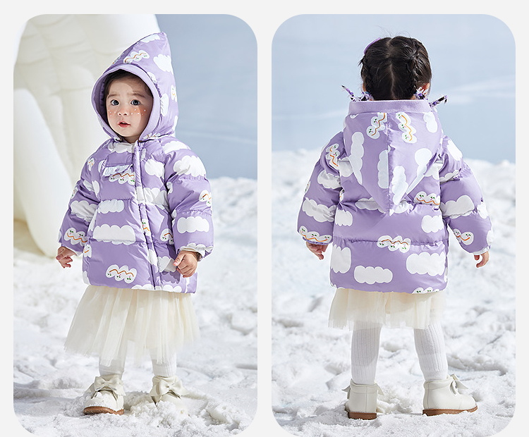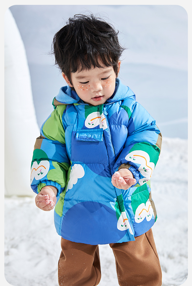 迷你巴拉巴拉男女童拒水拒油污精灵尖尖帽保暖连帽羽绒服冬新款