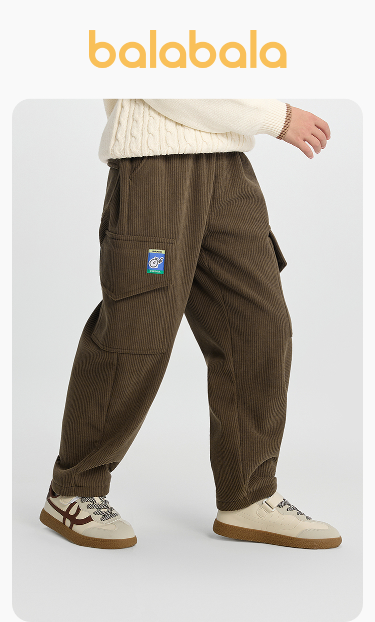 巴拉巴拉balaOne童装儿童裤子男童加绒长裤2025冬装新款工装裤潮