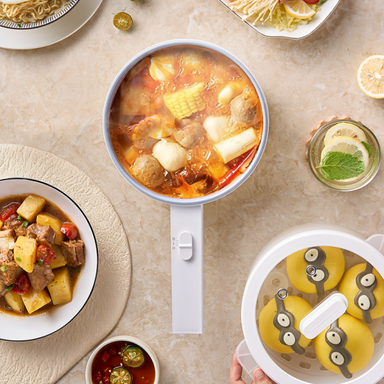 💥总是对于食物有着某种不可言说的执着,比如不同的食物需要配备不同的厨具 厨具太多的话,花销很大不说,还很占地方,本就狭小的厨房变得愈加拥挤…… 这款电火锅简直就是一款全能锅,平时的煎炒烹炸,我都在用,而且非常nice 奶乎乎的外表很是可爱,不用的时候,随意摆在厨房就非常好看哦🌈