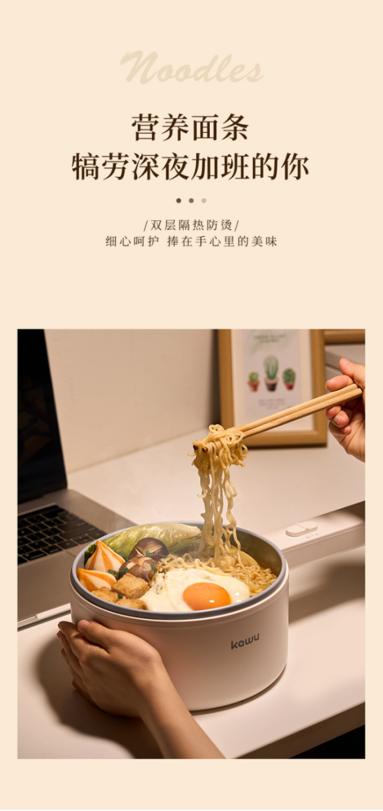 每天下班到家已经很晚了,很累,一想到饭后要刷锅、刷碗就很烦…… 外卖成了我的常备选项,但是外卖太油腻了,我的肠胃不是很好,吃过总是不舒服,甚至会闹肚子😓 有了这款卡屋多功能电火锅,下班煮一把面条都觉得超级满足,再放几颗青菜,那就是人间美味啦‼ 即使是一个人,也不能亏待自己哦,一个人也要好好地享受美食!毕竟民以食为天啊!吃得好,心情也会变的明媚起来呢🉑
