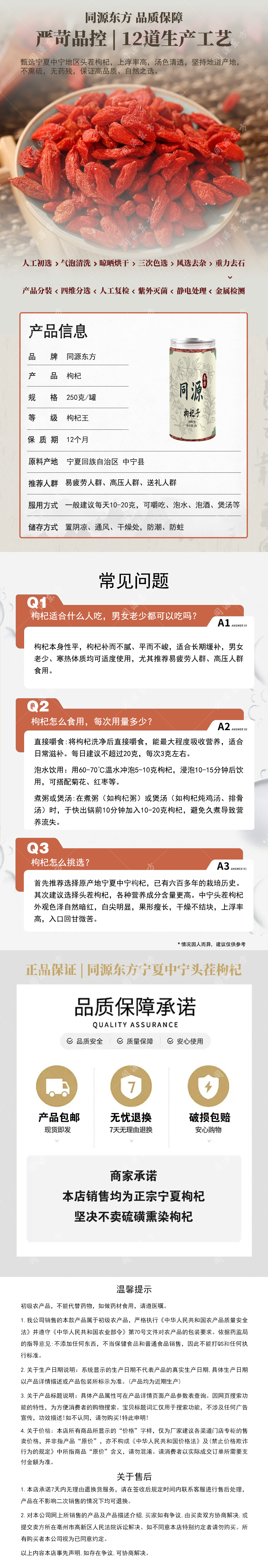 同源东方枸杞子 250克/罐 宁夏中宁头茬枸杞王 高品质大果 无硫不染色 昔日贡品 枸杞多糖和甜菜碱成分高 上浮率高
