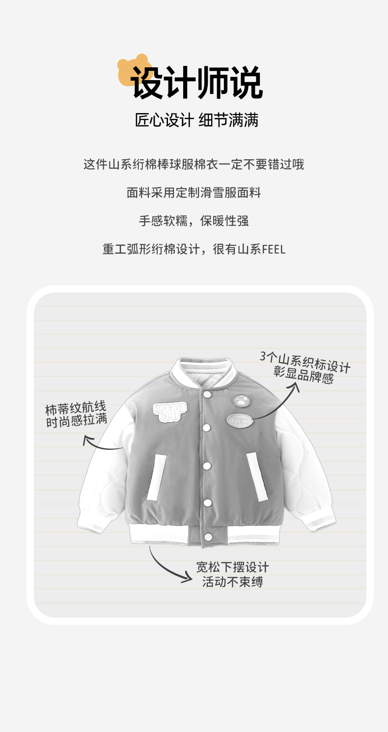 【夹棉加厚】齐齐熊宝宝棒球服外套男童秋冬2024新款儿童保暖秋装