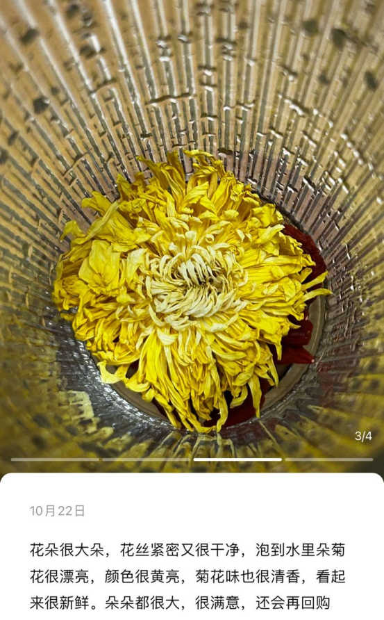 每年的必入款金丝皇菊来了‼️ 一朵一杯✅✅ 认准我们的品质 每朵干花厚实饱满超大朵! 降火降燥必备必备 每天泡一杯能够疏风散热 清肝明目、清热解毒!