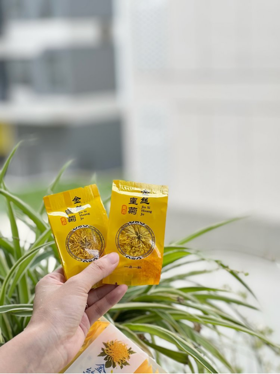 金丝皇菊是菊花中的精品 金黄艳丽,花形硕大,花香浓郁 特征明显:色泽金黄;性微寒 好看: 花朵硕大,花瓣娇美,状如手掌心,观赏价值高 好吃: 气味芬芳,香气扑鼻,富含氨基酸,可补充人体营养 好喝: 茶汤鲜亮,入口清香甘绵,解渴生津
