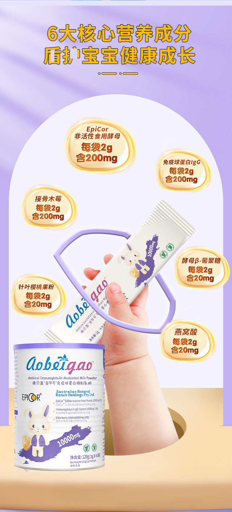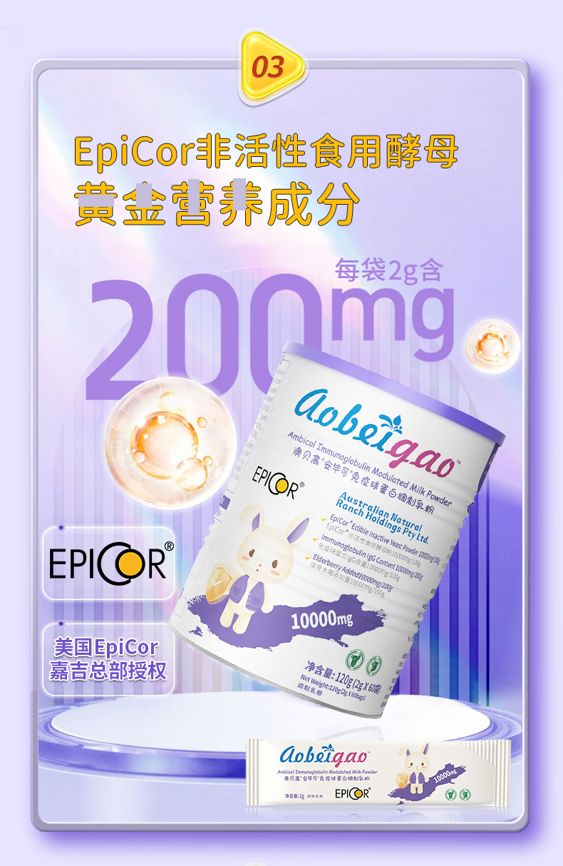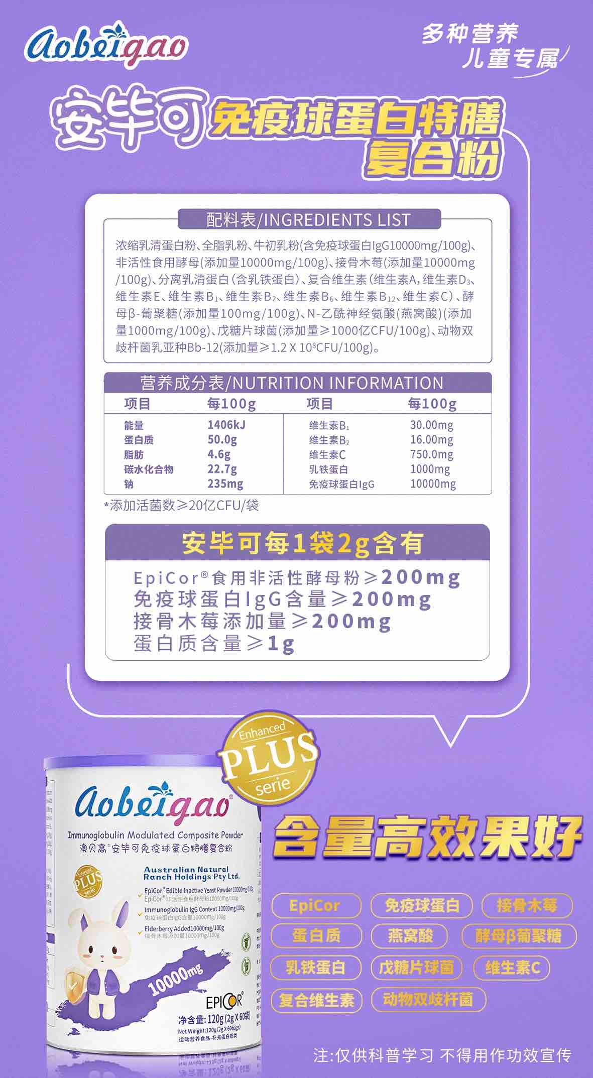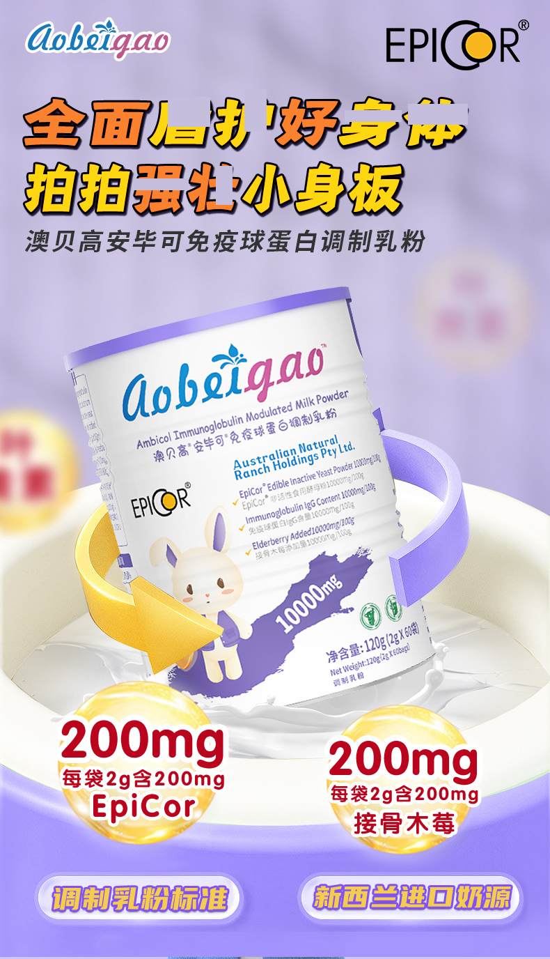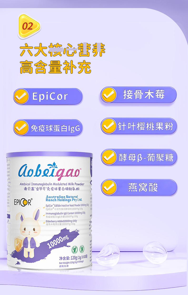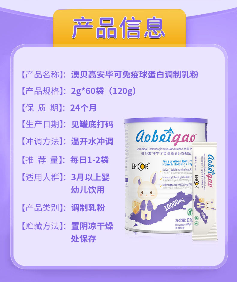 ⁵【大紫罐-艾比克复合粉】每条含200mg艾比可+免疫球蛋白200mg+200mg接骨木莓+乳铁蛋白 60包/罐 YY05-QTT-ZY