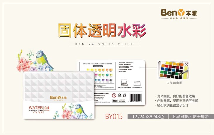 本雅固体透明水彩14色