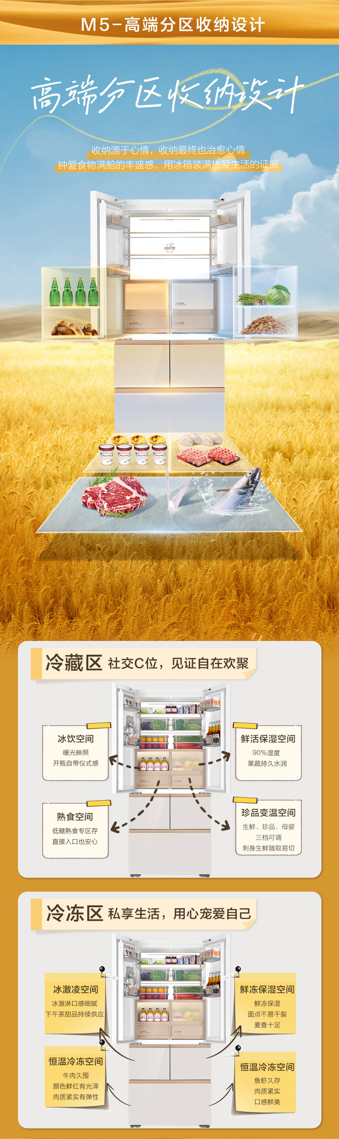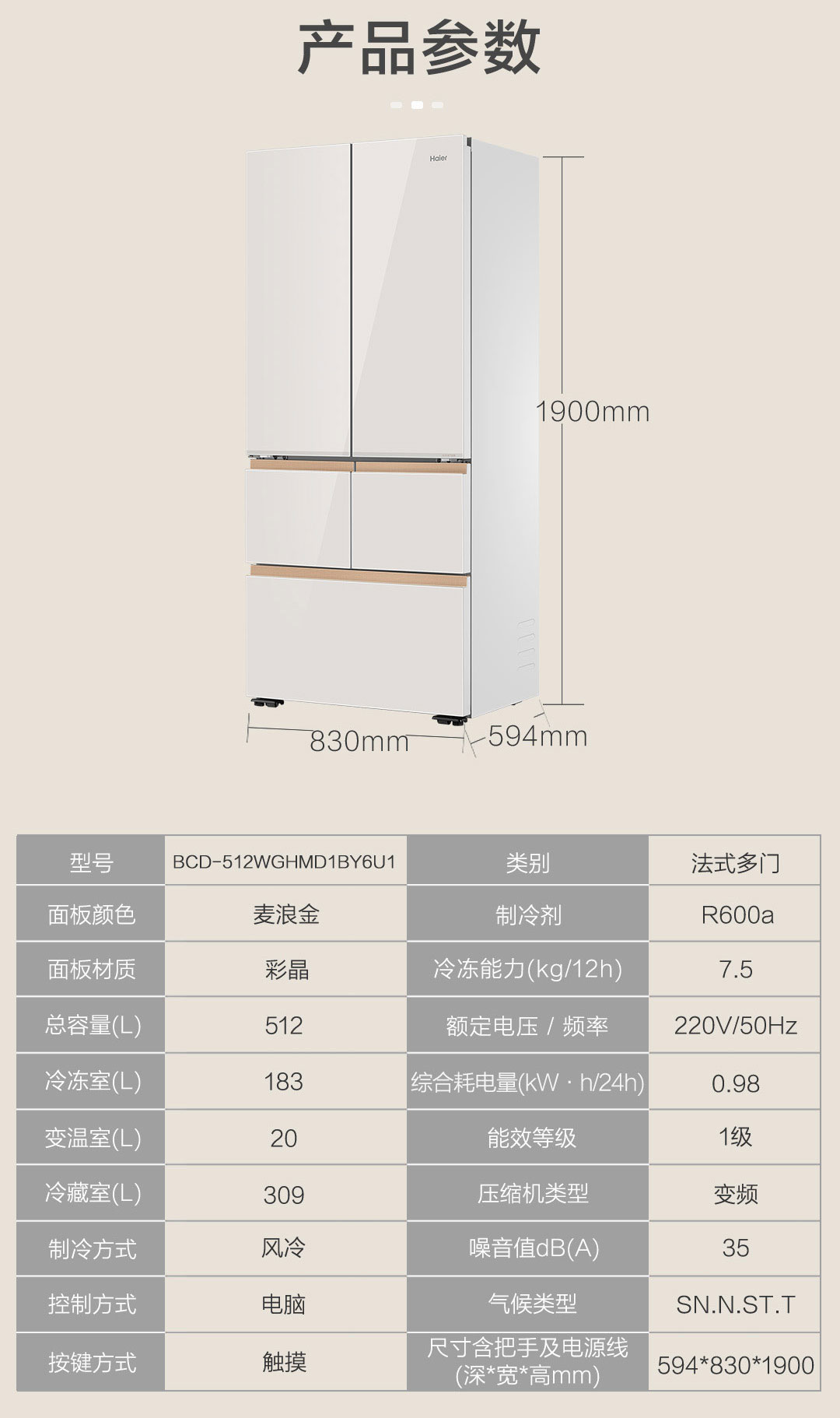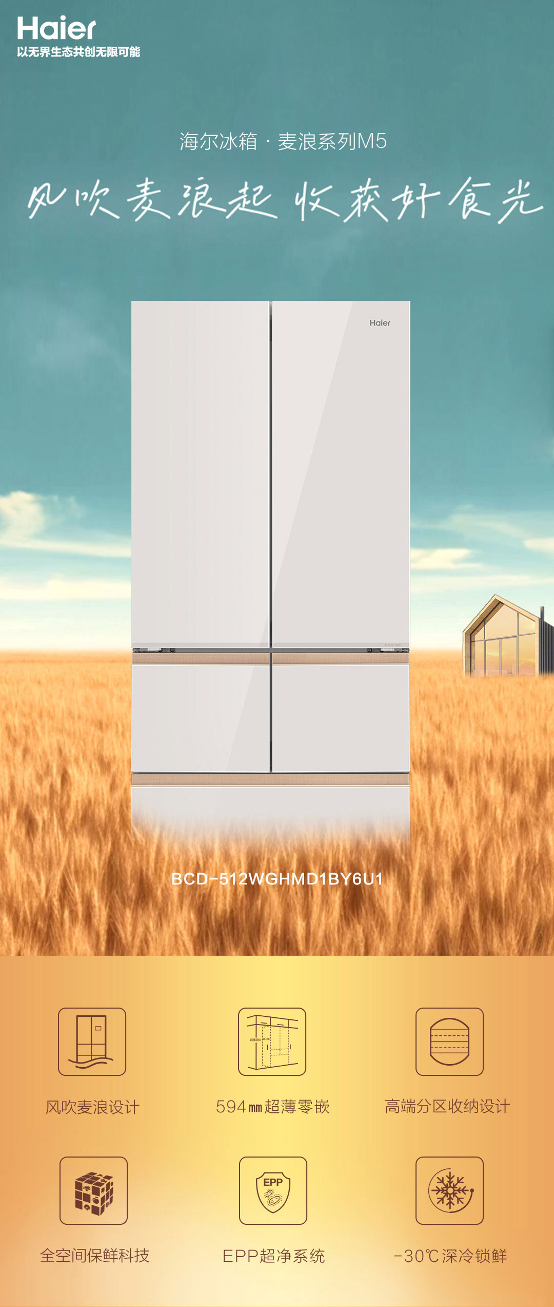 海尔(Haier)(202871)512升麦浪系列M5全空间保鲜BCD-512WGHMD1BY6U1风冷无霜变频一级能耗512五门多门冰箱