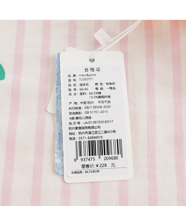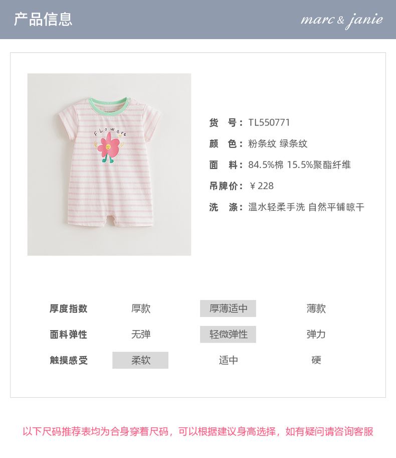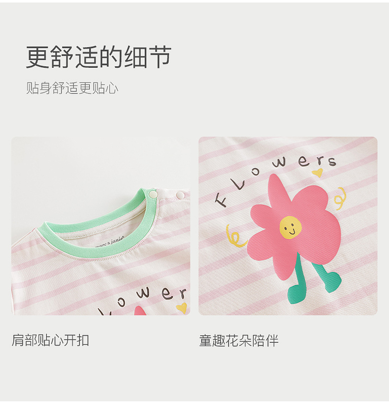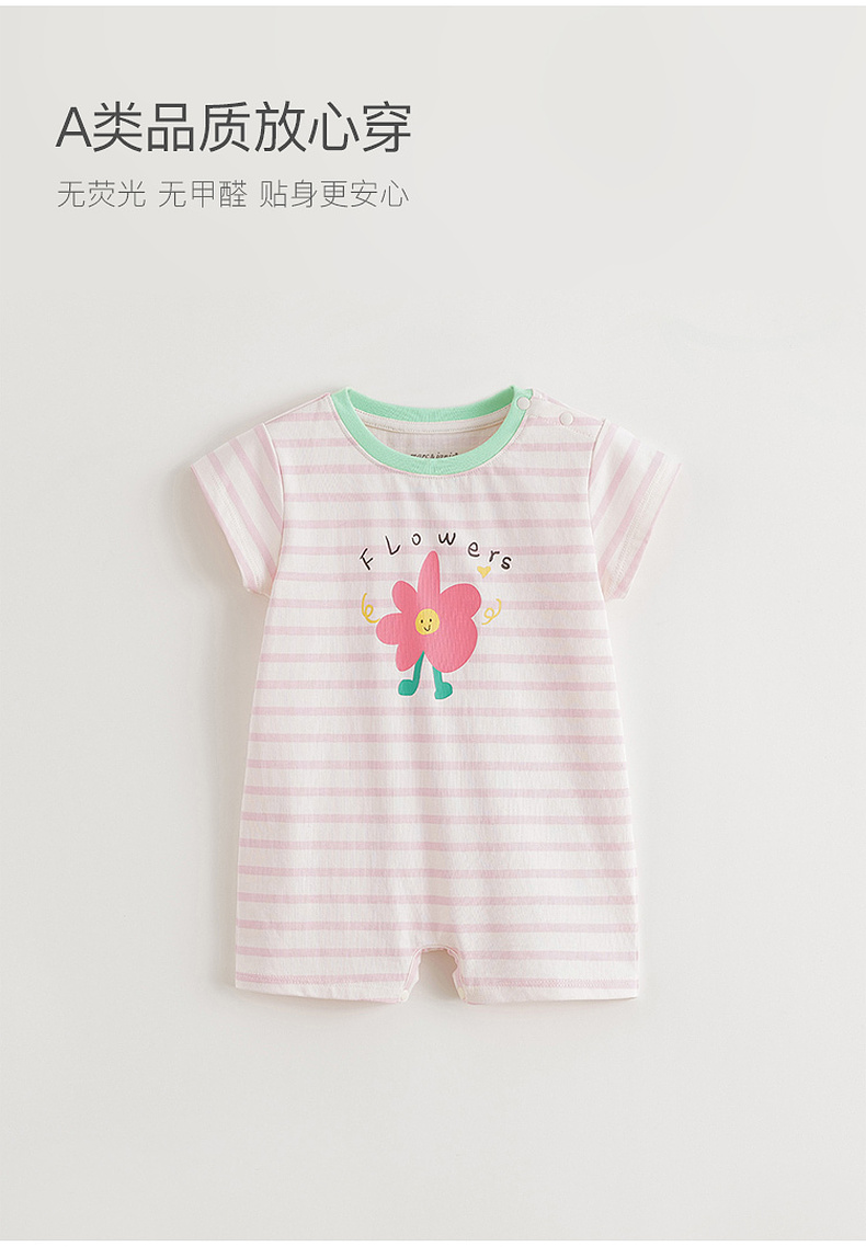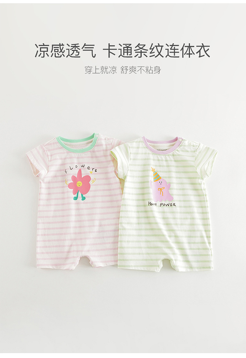 【凉感】马克珍妮女宝宝卡通条纹连体衣 婴儿爬服夏装新款550771