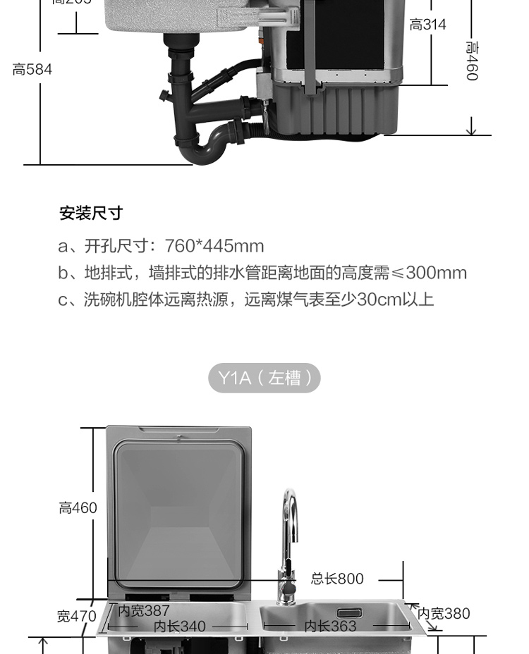 方太-Y1A水槽洗碗机 超微气泡 小巧双槽换装精选